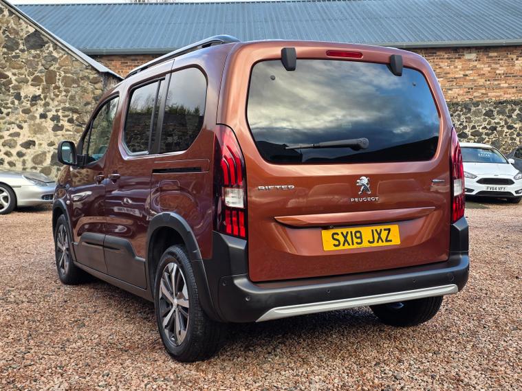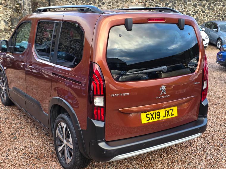 ?Spacious Rifter GT Line MPV in stand out Sunset Copper Pearl? 2019 PEUGEOT RIFTER 1.5 BLUEHDI GT LINE ➡️£12750 ➡️72, 000 miles ➡️Sunset Copper Pearl ?5 stamp service history ?Panoramic glass roof ?Apple CarPlay and Android Auto ?GT Line sports styling ?LEZ compliant ?Navigation system, 180 camera, cruise control, lane departure warning, front and rear parking sensors, keyless entry and start, power fold mirrors, auto headlights and wipers, roof rails ✅AA Cars Motor Dealer ✅Warranty included with upgrades available ✅Free 12 months AA Breakdown Cover ✅Finance options available ✅Part exchange welcome ?Rely Motors Ltd, Bankhead Buildings, Kinglassie, KY5 0UH ? dealer's website ?01592332302 / 01592332302 ?info dealer's website Specification includes 17in Alloy Wheels - Aoraki, 2 Heights Parcel Shelf, 6-Speaker Radio - MP3 Compatible, Air-Vents in 2nd Row with Fan Strength Command and USB Socket, Automatic Door Locking When Moving Off, Automatic Dual Zone Climate Control, Bluetooth Telephone Facility, Bumpers - Body Coloured Front, Connected 3D Navigation, Contrasting Wheel Arch Trim, DAB Digital Radio, Dark Tinted Rear Side and Tailgate Windows, Door Handles - Body Coloured, Door Sill Protectors with Gloss Black Inserts, ESP - Electronic Stability Program - with Hill Assist, Electric Parking Brake, Fixing Rings x4 in Load Area, Front Fog Lights - Cornering Assist, Front Interior Light with Reading Spotlights x2 and Rear Interior Light with Timer, Front Optimised Safety Headrests and Rear Retractable Headrests - x3 - Height-Adjustable, Front Three-Point Retractable Seatbelts with Force Limiters, Front Windscreen Wipers with Multi-Speed Setting, Front and Rear Parking Sensors, Front and Rear Scuff Plates, GT Line Emblems - Front Wings and Tailgate, Gloss Black Roof Bars, Halogen Headlamps, Mirror Screen, Opening Tailgate Window, PEUGEOT Open and Go System, Peugeot i-Cockpit - 8in Capacitive Touchscreen, Peugeot i-Cockpit - Head-Up Instrument Panel, Power Folding Door Mirror, Programmable Cruise Control and Speed Limiter, Quente Brown Interior Ambiance, Rear Windscreen Wiper Triggered Automatically in Reverse Gear, Safety Pack, Seatbelt Unfastened on the Move Audible and Visual Alert for Front and Rear Seats, Seating - 3 Independent Rear Seat - 2 Row - with Magic Flat Modularity with Controls Accessible from the Boot, Seating - Foldable Passenger Seat with Under-Seat Storage and Elbow Rest, Tailgate with Heated Rear Windscreen and Wiper Blade, Tray Tables on Front Seat Backs, Twin Sliding Side Doors - Glazed, Tyre Pressure Sensors, USB Socket, USB Socket at the Back, Visibility Pack, Voice Recognition - Radio-Navigation-Telephony Features, Zenith Roof