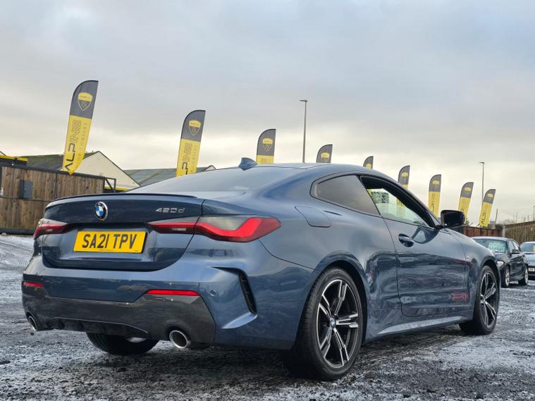 Introducing the stunning BMW 4 Series 420d MHT M Sport Coupe, now available at Alpine Motor Company in Dundee. Finished in a striking Arctic Race Blue, this exceptional vehicle combines cutting-edge technology with breathtaking performance. The 2.0-litre diesel hybrid engine delivers an exhilarating 190 ps, ensuring you experience the thrill of driving like never before. The Comfort Package adds an extra layer of luxury, while the Enhanced Bluetooth with Wireless Charging keeps you seamlessly connected on the go. Enjoy a premium sound experience with the exquisite Harman Kardon Loudspeaker System, perfect for music enthusiasts. The M Rear Spoiler and heated steering wheel enhance your driving experience, ensuring comfort and elegance in every journey. With ULEZ compliance and a full BMW service history, this model is not only stylish but also environmentally conscious. The Vernasca leather interior, accented with grey stitching, offers a sophisticated touch, complemented by the practicality of Sun Protection Glass. Stay connected with WiFi Hotspot Preparation, and navigate effortlessly with the Heads-Up Display and Virtual Cockpit. Don't miss your chance to own this luxurious, high-performance coupe. Visit Alpine Motor Company today and elevate your driving experience!