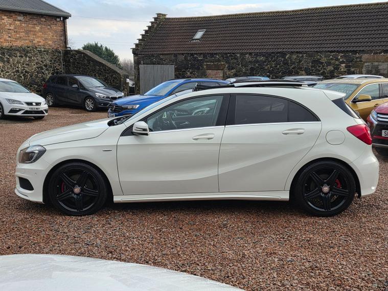 ?Automatic 211BHP all wheel drive A250 Engineered by AMG? 2014 MERCEDES-BENZ A-CLASS 2.0 A250 ENGINEERED BY AMG ➡️£11950 ➡️59, 900 miles ➡️Arctic White ?Automatic transmission with paddle shift ?Artico leather/microfibre heated sports seats ?Only 1 owner from new ?All wheel drive ?AMG body styling with with red accents all around ?Xenon headlights, panoramic roof, sports suspension, front and rear parking sensors, navigation system, cruise control, perforated brakes, auto headlights and wipers, headlight washers ✅AA Cars Motor Dealer ✅Warranty included with upgrades available ✅Free 12 months AA Breakdown Cover ✅Finance options available ✅Part exchange welcome ?Rely Motors Ltd, Bankhead Buildings, Kinglassie, KY5 0UH ? dealer's website ?01592332302 / 01592332302 ?info dealer's website Specification includes 18in Alloy Wheels - AMG 5-Spoke Design, 5.8-inch Tablet-Style Colour Display, AMG Bodystyling - Front and Rear Apron, AMG Bodystyling - Side Skirts, ASR - Acceleration Skid Control, ATTENTION Assist, Active Bonnet - Pedestrian Safety Measure which Detects an Impact and Raises Bonnet by 65mm, Air Conditioning, Air Vents with High Gloss Black Surround - Red Insert and Cruciform Nozzle, Alarm System with Interior Protection, Ambient Lighting in the Four Door Recesses - Door Pulls and Door Trim, Automatic Child Seat Recognition Sensor, BAS - Brake Assist, Beltline Strips - Chrome, Bluetooth, Bumpers - Body-Coloured with Decorative Red Strip on Front and Rear Bumpers, Collision Prevention Assist, Crash-Responsive Emergency Lighting, Cruise Control with SPEEDTRONIC Variable Speed Limiter, Distronic Plus, Door Handles - Body-Coloured, Door Mirrors - Electrically Adjustable and Heated, ESP - Electronic Stability Programme, Electric Parking Brake, Electronic Key - Chrome Surround, First Aid Kit, Footwell Lights in Front, Gear Shift Trimmed in Leather, Glove Compartment - Illuminated, Headlight Assist - Automatic Headlight Activation, Headlight Wash, Headlights - Bi-Xenon, Illuminated Door Sill Panels, Illuminated Headrests on Driver and Front Passenger Seats, Illuminated Reading Lights and Console Light in Rear Roof Lining, Illuminated Vanity Mirrors, Immobiliser, Instrument Cluster with 4 Analogue Dials and Needles Suspended in Six-o-Clock Position, Integrated Head Restraints, Light and Sight Package, Load-Securing Rings in Luggage Compartment, Panoramic Sliding Sunroof, Privacy Glass, Radio, Rear Seats - Split Folding 1-3 - 2-3, Roof Lining - Black, Satellite Navigation - Becker Map Pilot System, Seat Belt Reminder - Front and Rear, Seat Comfort Package - Seat Height Adjusters and Seat Cushion Angle Adjustment on Front Seats, Seat Occupancy Sensor - Front Passenger Seat, Seats - Heated Front, Seats - Sports, Side Skirts - Body-Coloured, Speakers x6, Sports Pedals with Rubber Studs, Steering Wheel - Red Stitching, Steering Wheel - Sports - Flat Bottom Design, Sun Visors with Illuminated Vanity Mirrors, Suspension - Sports - Engineered by AMG, Telephone Keypad, Trim - Carbon-Fibre Look, Tyre Pressure Monitoring System, USB Port, Warning Triangle