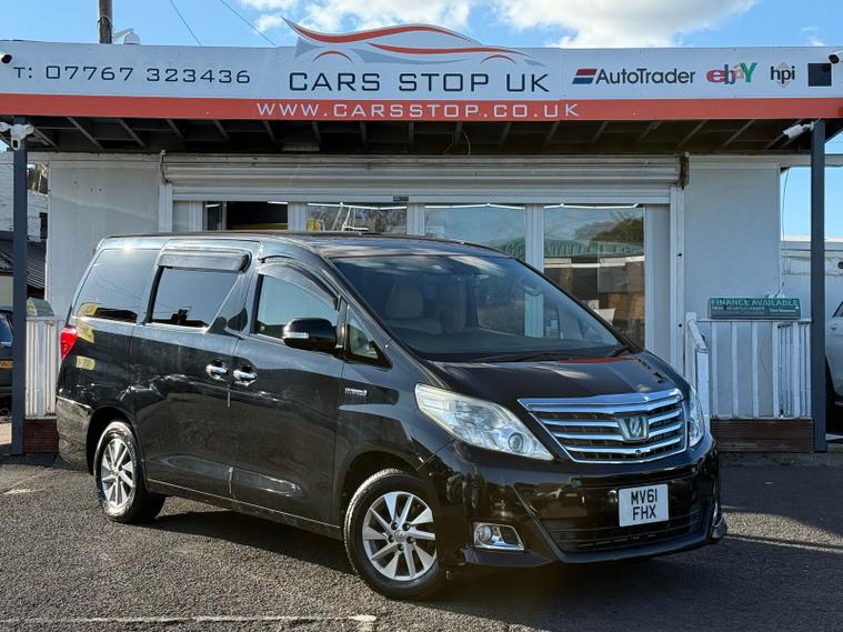 Here we have a fine example of a Toyota Alphard HYBRID 2.4L AUTO CRUISE 7 SEATS 5dr, LOW MILEAGE, FULLY LOADED, GREAT SPEC, LONG MOT and JUST SERVICED. AS PART OF THE AA GROUP WE OFFER 12 MONTHS FREE AA BREAKDOWN COVER WITH EVERY CAR SOLD & 5 DAYS DRIVEAWAY INSURANCE AVAILABLE (T&C's apply). KEY FEATURES: (TO BE CONFIRMED) Electric Sunroof, Xenon Headlamps, Heated Seats, Reverse Camera, 360 camera, Leather Captain Seats, Parking Sensors (Front & Rear), Keyless Entry, Keyless Start, Auto on Headlights, Hand Controls, Bluetooth, ISOFIX, Quick Clear Screen (Rear), Front & Rear Electric Windows, Electric & Folding Mirrors, Cup Holders, USB & AUX Features and more. SERVICE HISTORY: MOT CHECKS @ (26.6km & 71.6km) 16k 44k & 74k Miles. NEXT MOT DUE 27/07/2026 (NO ADVISORIES). LAST SERVICED 28/07/2025 @ 74, 834 MILES. ALL DEBIT AND CREDIT CARD PAYMENTS ACCEPTED. PART EXCHANGE ALWAYS WELCOME. EVENING VIEWINGS AVAILABLE ON REQUEST. OPEN 7 DAYS A WEEK, VISIT dealer's website WITH OVER 100 CARS IN STOCK.