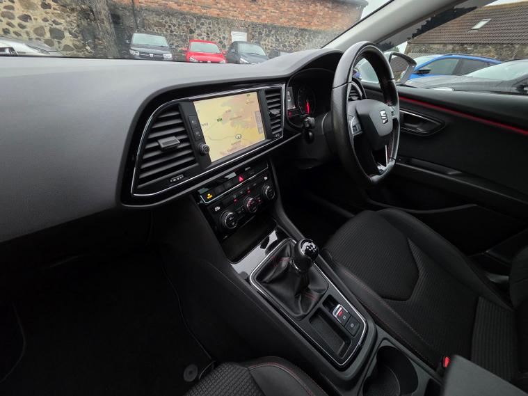 ?Sporty 150BHP Leon FR hatchback? 2019 SEAT LEON 1.5 TSI EVO FR ➡️£9950 ➡️70, 900 miles ➡️Nevada White Pearl ?Apple CarPlay and Android Auto ?Only 2 owners from new ?FR sports styling ?Timing belt replaced ?LEZ compliant ?LED headlights, navigation system, front and rear parking sensors, ambient lighting, cruise control, power fold mirrors, drive mode select, sport suspension, dual zone climate control ✅AA Cars Motor Dealer ✅Warranty included with upgrades available ✅Free 12 months AA Breakdown Cover ✅Finance options available ✅Part exchange welcome ?Rely Motors Ltd, Bankhead Buildings, Kinglassie, KY5 0UH ? dealer's website ?01592332302 / 01592332302 ?info dealer's website Specification includes 17in Alloy Wheels - Dynamic 30-2, Alarm - Volumetric, Bumpers - Exclusive FR Front and Rear, Convenience Pack Plus, Cruise Control, Dark Tinted Rear Windows, Driver and Passenger Sunvisor with Covered and Illuminated Mirrors, Dual Zone Climate Control, Electric Parking Brake Including Autohold Function, Electrically Adjustable Folding and Heated Door Mirrors, Front Assist with Pedestrian Protection, Front Sports Seats, Front and Rear Parking Sensors, Full LED Headlights, Illuminated Aluminium Front Door Sill with Trim Logo, Instrument Lighting with Brightness Control, LED Interior Illumination Pack, Leather Gear Knob, Media System Plus, Multi Coloured Ambient Lighting, Multi-Collision Braking System, Navigation System, SEAT Drive Profile, SEAT Full Link Smartphone Integration - Mirror Link - Apple CarPlay - Google Android Auto, Seatbelt Reminder - Front, Sports Suspension, Two Height-Adjustable Front and Rear Headrests, Tyre Pressure Monitoring System
