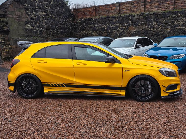 ?Stunning huge spec 360BHP A45 AMG in Satin Solar Beam Yellow wrap? 2015 MERCEDES-BENZ A-CLASS 2.0 A45 AMG 4MATIC ➡️£17750 ➡️71, 800 miles ➡️Satin Solar Beam Yellow / Cosmos Black ?Automatic AMG SpeedShift transmission with paddle shift ?AMG Performance heated leather seats ?O.Z Leggera 19” alloys ?All wheel drive ?AMG body styling with AMG Aerodynamics pack ?Xenon headlights, panoramic roof, electric memory seats, navigation system, cruise control, high performance braking system, AMG exclusive package, front and rear parking sensors, AMG dynamic select ✅AA Cars Motor Dealer ✅Warranty included with upgrades available ✅Free 12 months AA Breakdown Cover ✅Finance options available ✅Part exchange welcome ?Rely Motors Ltd, Bankhead Buildings, Kinglassie, KY5 0UH ? dealer's website ?01592332302 / 01592332302 ?info dealer's website Specification includes 5.8-inch Tablet-Style Colour Display, AMG Aerodynamics Package, AMG Bodystyling - Front Apron with Splitter in High Gloss Black, AMG Bodystyling - Rear Apron with Trim Strip in High Gloss Black, AMG Bodystyling - Side Sill Panels with Inserts in High Gloss Black, AMG Drive Unit with Leather-Trimmed Gear Shift, AMG Instrument Cluster with Colour Display and AMG Menu, AMG Performance Seats - Contoured Seat Shape - Head Restraints and AMG Badge, ASR - Acceleration Skid Control, ATTENTION Assist, Active Bonnet - Pedestrian Safety Measure which Detects an Impact and Raises Bonnet by 65mm, Active Park Assist with Parktronic, Air Vents with High Gloss Black Surround - Red Insert and Cruciform Nozzle, Alarm System with Interior Protection, Ambient Lighting in the Four Door Recesses - Door Pulls and Door Trim, Automatic Child Seat Recognition Sensor, BAS - Brake Assist, Beltline Strips - Black, Bluetooth, Bumpers - Body-Coloured, Collision Prevention Assist, Crash-Responsive Emergency Lighting, Cruise Control with SPEEDTRONIC Variable Speed Limiter, DAB Digital Radio Tuner, Door Handles - Body-Coloured, Door Mirrors - Electrically Adjustable and Heated, ESP - Electronic Stability Programme, Electric Parking Brake, First Aid Kit, Footwell Lights in Front, Gear Shift Trimmed in Leather, Glove Compartment - Illuminated, Headlight Assist - Automatic Headlight Activation, Headlight Wash, Headlights - Bi-Xenon, Illuminated AMG Door Sills, Immobiliser, Integrated Head Restraints, Load-Securing Rings in Luggage Compartment, Luxury Automatic Climate Control - Two-Zone Control with Display, Media Interface, Memory Package, Panoramic Sliding Sunroof, Parking Sensor - Front, Parking Sensor - Rear, Pre-Wiring for Becker Map Pilot Navigation System, Privacy Glass, Race Start Function, Rear Seats - Split Folding 1-3 - 2-3, Roof Lining - Black, Seat Belt Reminder - Front and Rear, Seat Belts - Red, Seat Comfort Package - Seat Height Adjusters and Seat Cushion Angle Adjustment on Front Seats, Seat Occupancy Sensor - Front Passenger Seat, Seats - Heated Front, Side Skirts - Body-Coloured, Speakers x6, Sports Pedals with Rubber Studs, Sun Visors with Illuminated Vanity Mirrors, Suspension - AMG Sports, Telephone Keypad, Trim - Carbon-Fibre Look, Tyre Pressure Monitoring System, USB Port, Warning Triangle