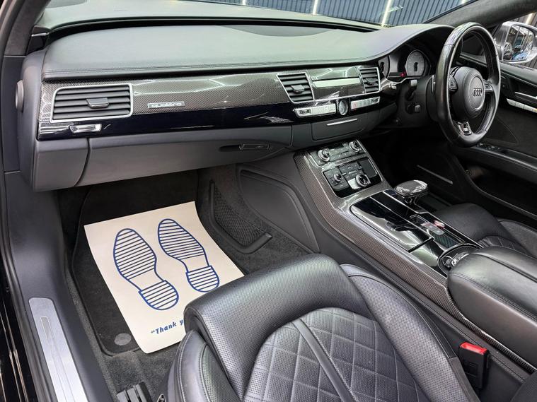 EPS Cars bring you this 2016 Audi S8 TFSI V8 boasts a full service history, with its last service completed on 2025-10-20 at 90, 355 miles, and benefits from an MOT valid until February 2026, ensuring peace of mind. This Euro 6 compliant, four wheel drive model is powered by a robust 4.0 litre petrol engine, offering impressive performance. It comes with a 6 month warranty and a clear vehicle history check. Notable features include striking 21 inch alloy wheels, Audi Exclusive carpet and floor mats, and a high specification mobile telephone preparation system with Bluetooth connectivity. For added convenience, it features heated front seats and an advanced key for keyless entry. The Audi S8 TFSI V8 delivers exceptional performance, accelerating from 0-60mph in a remarkable 4.0 seconds, a figure that sets it apart from many other vehicles in its class. This dynamic capability is complemented by its spacious boot, offering ample room for luggage or shopping. The combination of its powerful engine, advanced technology, and practical features makes this Audi S8 a compelling choice for those seeking a blend of performance and luxury. Full Options Include: Airbags, Cruise Control, Fog Lights, Automatic Lights, Xenon Lights, Emergency Braking System, Antilock Braking System, Central Locking, Tyre Pressure Monitoring System, Isofix Child Seat Mounting System, Parking Sensors Front, Parking Sensors Rear, Electronic Stability Control, Distance Monitoring System, Anti Slip Control, 4 Wheel Drive, Automatic Windscreen Wipers, Rear View Camera, Alarm, Immobiliser, DAB Radio, CD Player, Premium Audio, Bluetooth Audio, Voice Control, Satellite Navigation, MP3, Bluetooth Telephone, USB Audio, Multi Function Steering Wheel, Power Steering, Electric Windows, Electric Mirrors, Keyless Start, Start/Stop, Hill Start, Tinted Windows, Headlight Washer, Air Conditioning, Climate Control, Dual Zone Climate Control, Electric Boot, Electrically Adjustable Seats, Leather Seats, Heated Seats, Alloy Wheels, Tiptronic Transmission. Buying from EPS Cars means you get options that suit you to purchase your next car. We can offer a video viewing and answer your questions without you needing to make the journey. Whatever way you prefer to buy, we can arrange a collection appointment or arrange to have the vehicle delivered to you wherever you are. All cars have an inspection for your reassurance. We also can help you with part exchanging your old vehicle and financing your new one. As a family run business. We pride ourselves on our high level of service (which we have been awarded for) and as can be seen from our reviews and will be happy to answer any of your questions.
