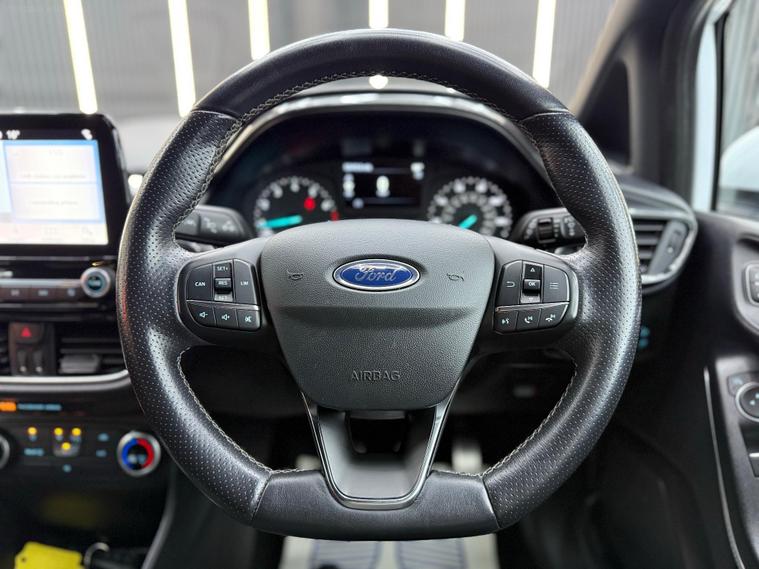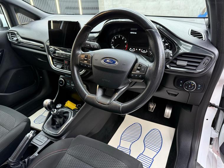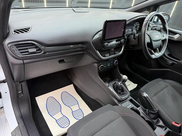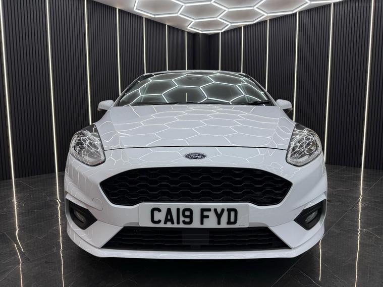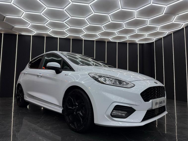EPS Cars brings you this 2019 Ford Fiesta ST Line which boasts a full service history, with its last service completed in January 2025 at 55, 500 miles, and benefits from an MOT valid until February 2026. This Euro 6 compliant 1.0 litre petrol model comes with a 6 month engine/gearbox warranty for your peace of mind. The ST Line trim level is evident in its sporty styling, further enhanced by 18 inch Rock Metallic alloy wheels with a machined finish. Inside, you'll find practical features such as manual air conditioning and cruise control, while automatic headlights ensure optimal visibility. The NCAP Pack adds to the vehicle's safety credentials. The Ford Fiesta ST Line offers an engaging driving experience, achieving 0 to 62 miles per hour in just 10.0 seconds. Its low CO2 emissions highlight its efficiency, making it a more economical choice compared to many other vehicles in its class. This combination of performance, efficiency, and comprehensive service history makes this Fiesta ST Line a compelling option for those seeking a well maintained and enjoyable compact car. Full Options Include: Airbags, Cruise Control, Fog Lights, Automatic Lights, Emergency Braking System, Antilock Braking System, Central Locking, Tyre Pressure Monitoring System, Isofix Child Seat Mounting System, Parking Sensors Front, Parking Sensors Rear, Electronic Stability Control, Distance Monitoring System, Anti Slip Control, Alarm, Immobiliser, Wifi, DAB Radio, Premium Audio, Bluetooth Audio, Voice Control, Satellite Navigation, SD Card, MP3, Bluetooth Telephone, USB Audio, Multi Function Steering Wheel, Power Steering, Electric Windows, Electric Mirrors, Heated Mirrors, Start/Stop, Tinted Windows, Heated Windscreen, Air Conditioning, Climate Control, Dual Zone Climate Control, Alloy Wheels. Buying from EPS Cars means you get options that suit you to purchase your next car. We can offer a video viewing and answer your questions without you needing to make the journey. Whatever way you prefer to buy, we can arrange a collection appointment or arrange to have the vehicle delivered to you wherever you are. All cars have an inspection for your reassurance. We also can help you with part exchanging your old vehicle and financing your new one. As a family run business. We pride ourselves on our high level of service (which we have been awarded for) and as can be seen from our reviews and will be happy to answer any of your questions.