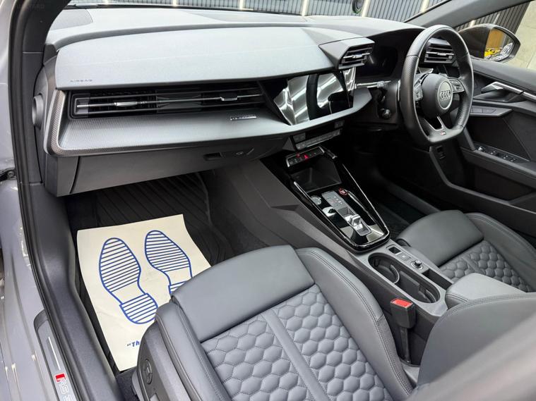 Boasting an exceptionally low mileage of just 1500 miles for a 2023 model, this Audi RS3 TFSI Vorsprung represents a remarkable find. This four wheel drive, Euro 6 compliant vehicle is powered by a potent 2.5 litre petrol engine, delivering exhilarating performance with the added bonus of Stage3 by MRC and full downpipe Miltek Exhaust System. It comes with a full service history, a valid MOT until September 2026, and a 6 month warranty for your peace of mind. The single owner has ensured this RS3 is in superb condition, featuring the desirable RS Dynamic Pack, rear side airbags with a head airbag system, and advanced Parking Assist with front and rear sensors. Connectivity is seamless thanks to the Bluetooth interface, and the Driver Assistance Package includes adaptive cruise control for a more relaxed driving experience.<br><br>The performance of this Audi RS3 TFSI Vorsprung is truly exceptional, capable of accelerating from 0 to 62 miles per hour in a mere 3.8 seconds. This rapid acceleration is a key indicator of how this vehicle surpasses many others in its class. The Vorsprung trim level ensures a wealth of premium features are included as standard, enhancing both comfort and convenience for every journey.<br><br>Options: Stage2 by MRC, Carbon Fibre Steering Wheel and Mirror Caps, Full Downpipe Miltek Exhaust System, Inter Coolers, Sports Filters, Airbags, Cruise Control, Adaptive Cruise Control, Fog Lights, Automatic Lights, LED Daytime Running Lights, Emergency Braking System, Antilock Braking System, Central Locking, Tyre Pressure Monitoring System, Isofix Child Seat Mounting System, Parking Sensors Front, Parking Sensors Rear, Electronic Stability Control, Distance Monitoring System, 4 Wheel Drive, Automatic Windscreen Wipers, Active Suspension, Rear View Camera, Head Up Display, Alarm, DAB Radio, Bluetooth Audio, Voice Control, Satellite Navigation, Bluetooth Telephone, Multi Function Steering Wheel, Power Steering, Electric Windows, Electric Mirrors, Keyless Start, Start/Stop, Tinted Windows, Heated Windscreen, Headlight Washer, Air Conditioning, Climate Control, Sports Seats, Leather Seats, Heated Seats, Roof Rails, Sunroof, Alloy Wheels, One Owner.<br><br>Buying from EPS Cars means you get options that suit you to purchase your next car. We can offer a video viewing and answer your questions without you needing to make the journey. Whatever way you prefer to buy, we can arrange a collection appointment or arrange to have the vehicle delivered to you wherever you are. All cars have an inspection for your reassurance. We also can help you with part exchanging your old vehicle and financing your new one. As a family run business. We pride ourselves on our high level of service (which we have been awarded for) and as can be seen from our reviews and will be happy to answer any of your questions.