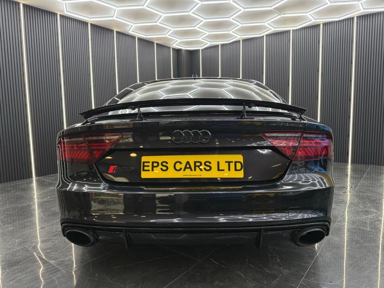 This Audi RS7 TFSI V8 from 2015 boasts a remarkable provenance, having been meticulously maintained by a single owner with a full service history. This impressive 4.0L petrol engine, compliant with Euro 6 emissions standards, delivers exhilarating performance with a 0-62mph acceleration of just 3.9 seconds. Its four wheel drive system ensures confident handling in all conditions, while the MOT remains valid until February 2027, offering peace of mind. Inside, you'll find a host of premium features designed for comfort and convenience, including heated front seats, a deluxe four zone climate control system, and the immersive BOSE Surround Sound System.<br><br>The Audi RS7 stands out from its peers with its exceptional blend of power and refinement. The Acoustic Parking System and Audi Parking System Plus, featuring front and rear sensors, make manoeuvring effortless, complementing the generous boot space that offers practicality for everyday use. These carefully selected features, combined with the vehicle's impressive performance credentials and single owner history, highlight its superior quality and desirability.<br><br>Airbags, Cruise Control, Fog Lights, LED Daytime Running Lights, Antilock Braking System, Central Locking, Tyre Pressure Monitoring System, Isofix Child Seat Mounting System, Parking Sensors Front, Parking Sensors Rear, Electronic Stability Control, Anti Slip Control, Automatic Windscreen Wipers, Panoramic Camera, Rear View Camera, Head Up Display, Alarm, DAB Radio, Bluetooth Audio, Satellite Navigation, Bluetooth Telephone, USB Audio, Power Steering, Electric Windows, Electric Mirrors, Keyless Start, Keyless Entry, Start/Stop, Hill Start, Air Conditioning, Electric Boot, Leather Seats, Heated Seats, Alloy Wheels.<br><br>Buying from EPS Cars means you get options that suit you to purchase your next car. We can offer a video viewing and answer your questions without you needing to make the journey. Whatever way you prefer to buy, we can arrange a collection appointment or arrange to have the vehicle delivered to you wherever you are. All cars have an inspection for your reassurance. We also can help you with part exchanging your old vehicle and financing your new one. As a family run business. We pride ourselves on our high level of service (which we have been awarded for) and as can be seen from our reviews and will be happy to answer any of your questions.