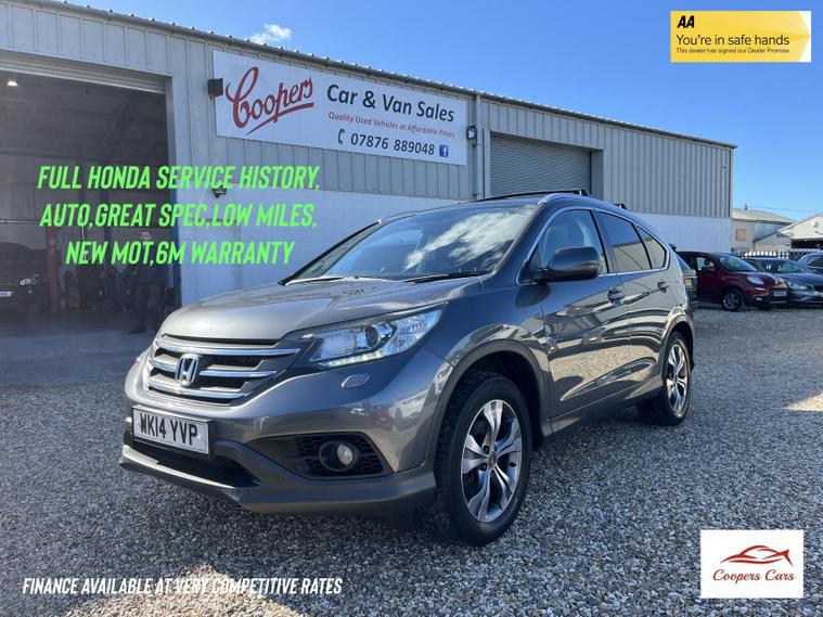 A cherished, low mileage example of these endlessly versatile family SUVs. Well known for their excellent reliability and comfort. This one has been very well looked after with a full Honda main dealer service history and in excellent condition. The car will be leaving us with a brand new MOT and supported by a six month warranty and twelve months breakdown cover (warranty can be extended to 48m at an additional cost). Lovely specification with alloy wheels, privacy glass, parking sensors, rear reversing camera, full leather interior with heated front seats, sat nav and much much more.