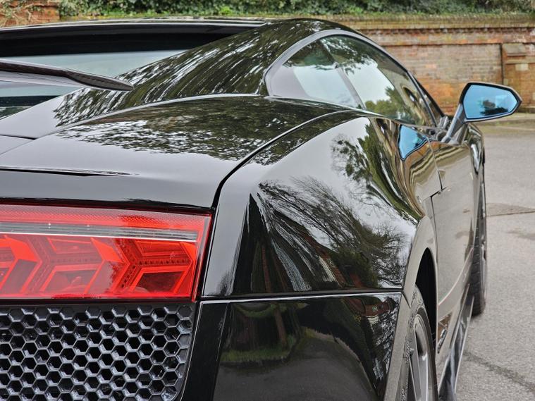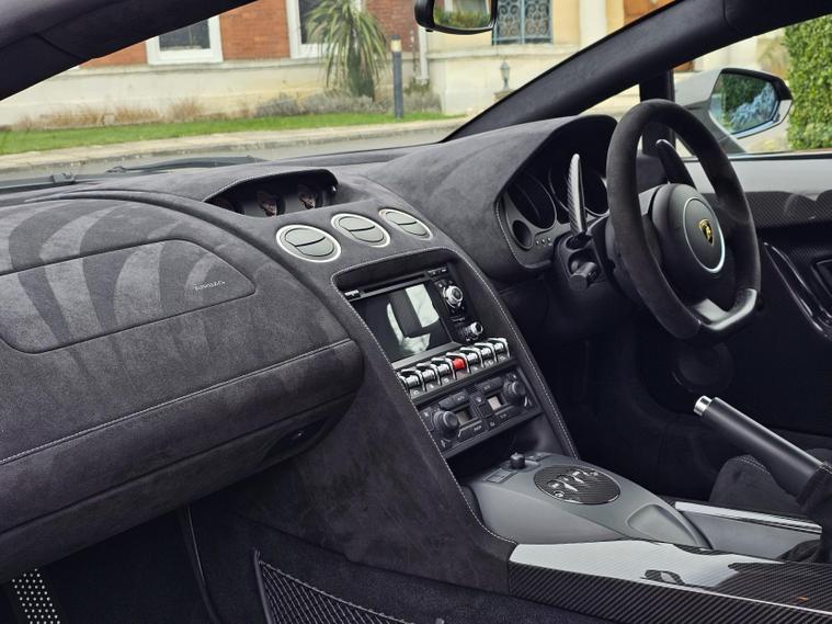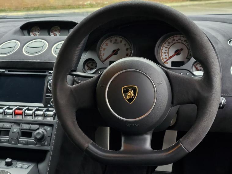 The Nero Noctis exterior paintwork of this Lamborghini Gallardo Superleggera adds a touch of elegance and sophistication to its already striking design. The deep black colour enhances the sleek lines and aggressive stance of this coupe, making it a head-turner wherever you go.