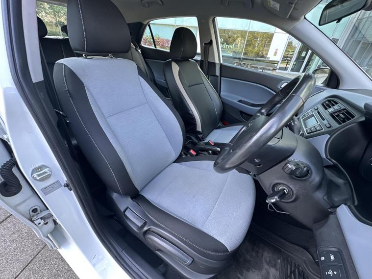 Inside, the i20 comes well equipped with Bluetooth, USB, Aux, cruise control with speed limiter, lane departure warning, rear parking sensors, and a multifunction trip computer. Comfort is assured with air conditioning, electric front and rear windows, a leather steering wheel with audio controls, and a variable-height boot floor. Stylish 16-inch alloy wheels, LED daytime running lights, and body-coloured mirrors with integrated indicators complete the look.