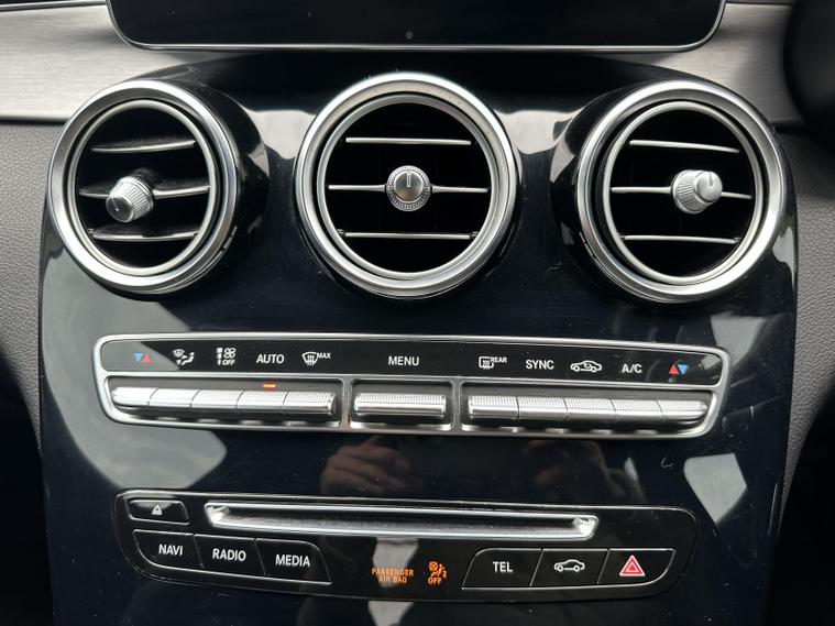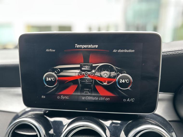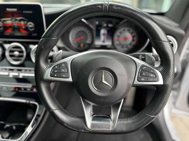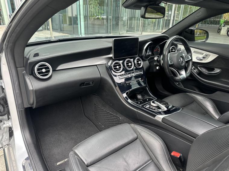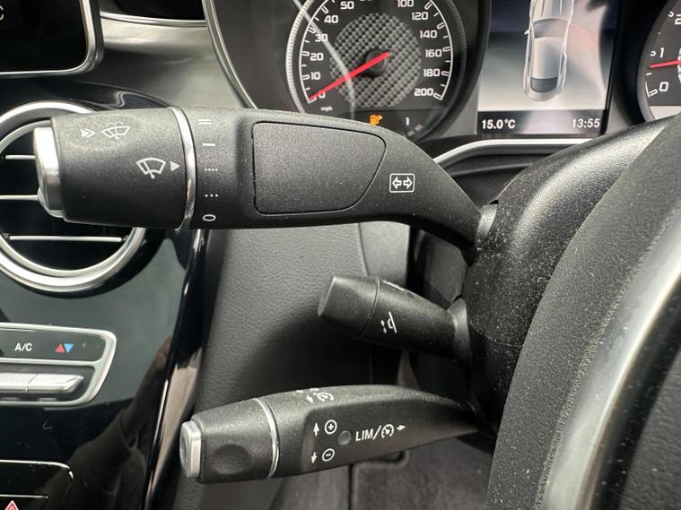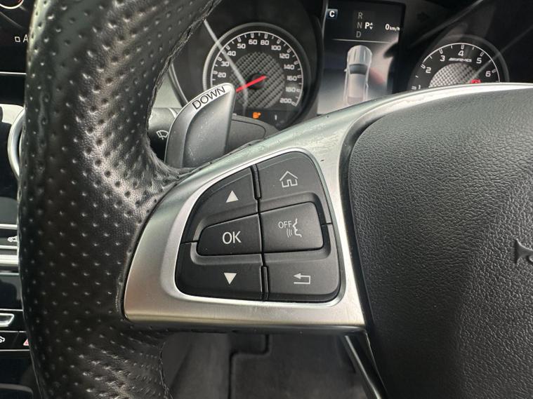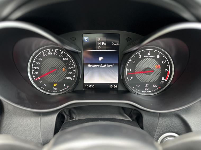 Inside, the cabin combines premium comfort with AMG sport styling. Heated AMG sports seats, ambient lighting, high-gloss black trim with aluminium accents, and a leather AMG steering wheel create a refined atmosphere. Technology highlights include COMAND Online with 8.4-inch display, Bluetooth, DAB radio, AMG Dynamic Select driving modes, AMG Track Pace, cruise control with limiter, and a reversing camera.