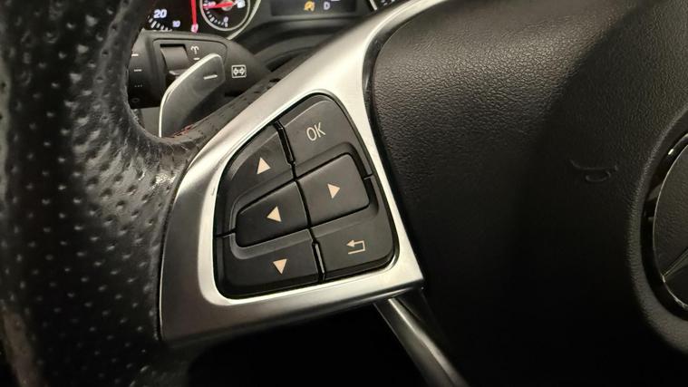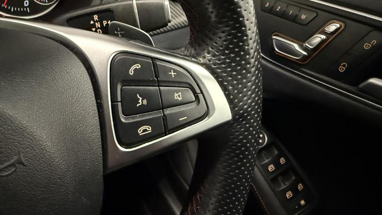 - Steering Wheel - 3-Spoke Leather - 12-Button Multi-Function with Flattened Lower Section and Perforated Grip Area and Red Contrast Stitching