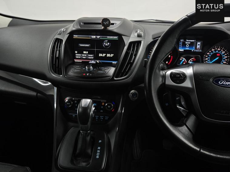 Ford Kuga Titanium Sport TDCI 4X4 A, HPI CLEAR, ULEZ Compliant. This vehicle has been well maintained with some service stamps in book. This vehicle is finished in a stunning black metallic paintwork with contrasting black interior. This vehicle has just been recently serviced and health checked to ensure every aspect of this car is in working order, passing with no faults. This car has been very well maintained and drives brilliantly. This vehicle also has a very good specification with many optional extras, adaptive headlights, Bluetooth connectivity, cruise control, DAB radio, daytime running lights, electric heated side mirrors, drive mode selector, electric windows all around, navigation system, phone connectivity, and many many more options too long to list! This car is a must see!