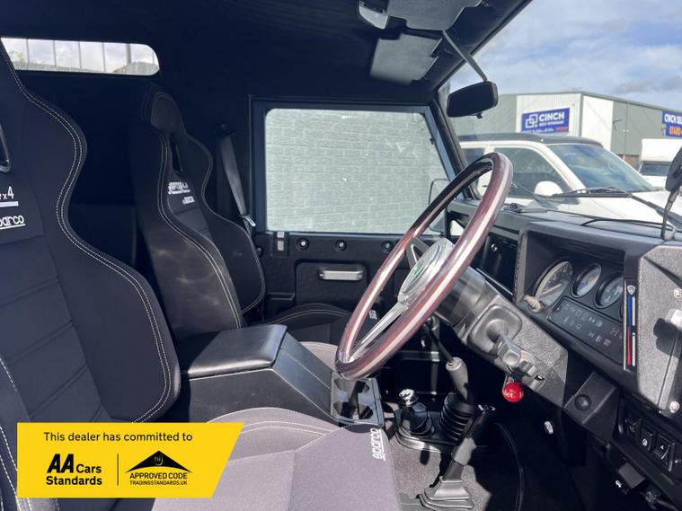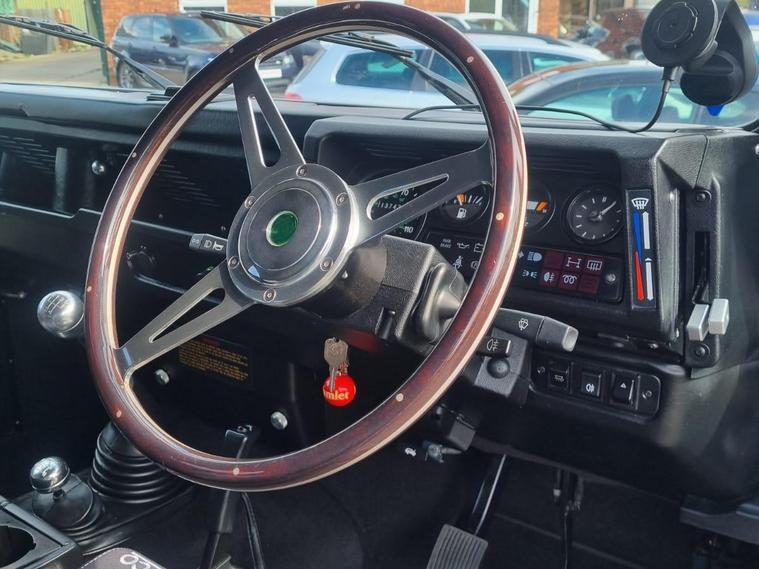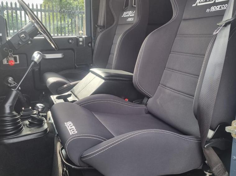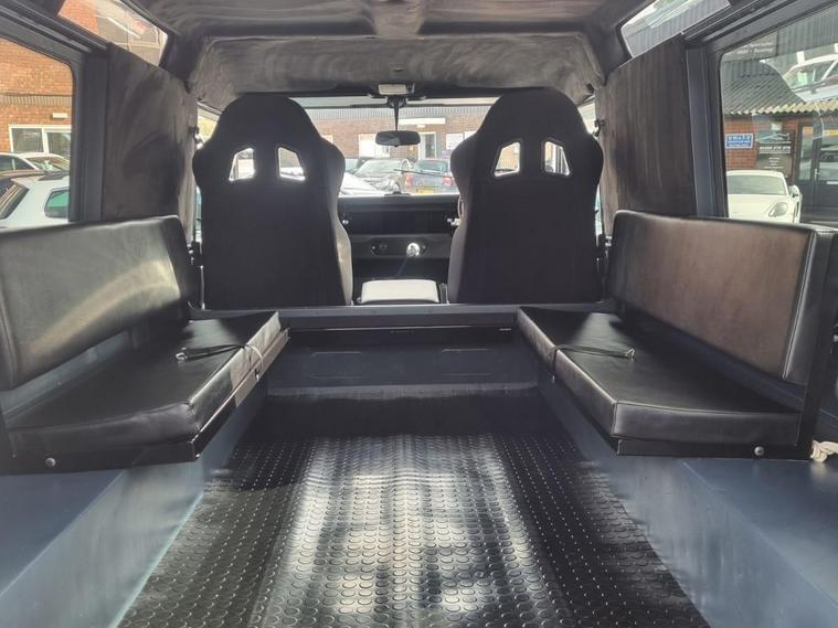 We are pleased to offer this stunning one of a kind Land Rover Defender 110 fully refurbished in factory condition. Upgraded 300 tdi engine with new timing belt, uprated K&N air filter, brake pipes, brake discs , callipers, master pump, new springs and shocks. WIPAC LED all around, Urban led bumper, rear nas step bumper, Panoramic window, premium suede fabric roof liner, alpine window, sparco bucket seats, cubic box, usb charger, rear seat bench, new seals all around, ew door skin, Jet black contrasting roof, new checker plate in matching jet black, Hawke Osprey 18 inch wheels, dark wood aluminium steering wheel, aluminium door handles, lever, lock sill button in aluminium, lever knobs, new upgraded door card panels. Genuine Umbrella Holder + umbrella, new black carpet mat, bulkhead removal kit, heavy duty steering arms, new swivels, bearings, oil seals, hinges all around, new water pipes, water pump & radiator. New 90cm intercooler radiator, new propshaft front end rear, galvanised turrets and spring seat stainless steel exhaust. New clutch, original chassis.