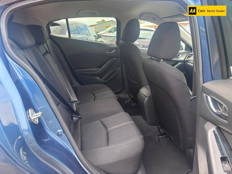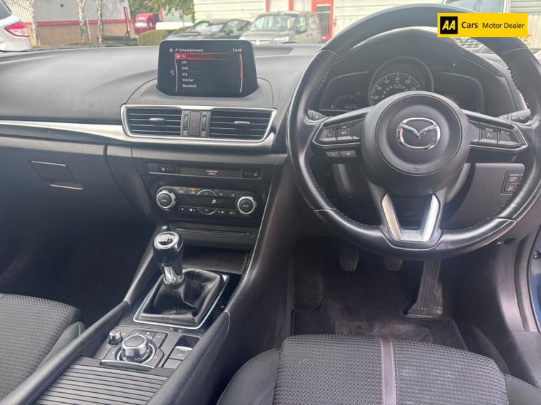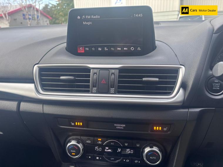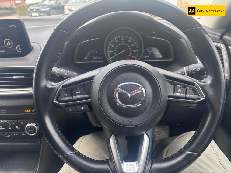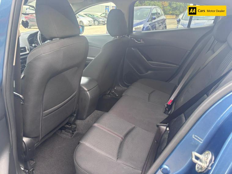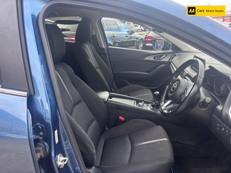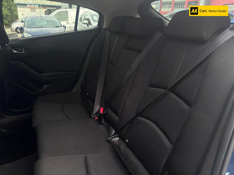 Inside, the black cloth upholstery adds a touch of elegance while ensuring comfort for all passengers. The soft fabric is not only inviting but also practical, making it easy to maintain while providing a cosy atmosphere for your journeys. Whether you’re commuting to work or heading out for a weekend trip, the interior of this Mazda3 is designed to keep you comfortable and relaxed.