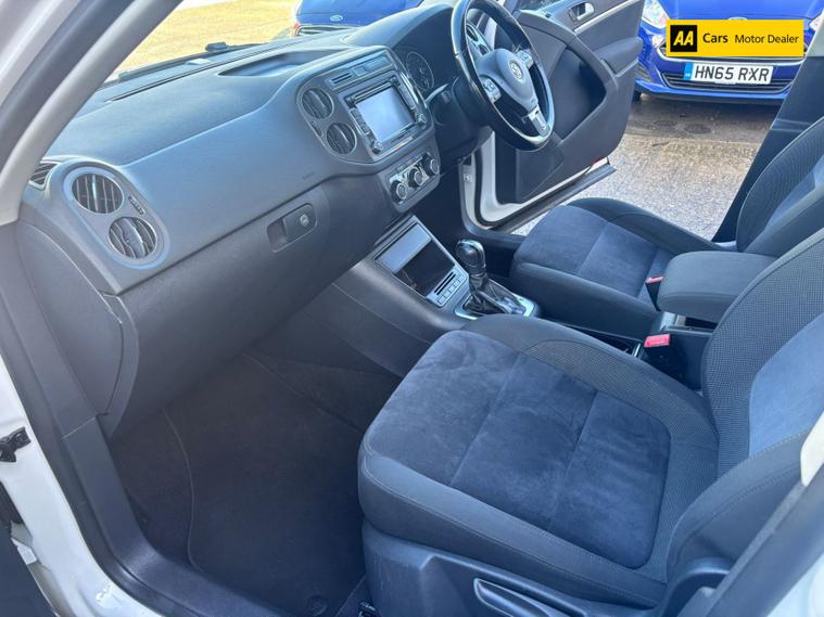 We are very proud to offer this stunning Volkswagen Tiguan 2.0 TDI BlueMotion Tech Sport SUV, a perfect blend of style, performance, and practicality. With its sleek Candy White exterior and spacious interior, this vehicle is designed to turn heads while providing a comfortable ride for you and your passengers. The powerful 2.0-litre diesel engine delivers an impressive 138 bhp, allowing you to accelerate from 0 to 60 mph in just 10.2 seconds, making it an ideal choice for both city driving and weekend adventures. With a top speed of 117 mph and a fuel consumption of 47.1 mpg, this SUV is as efficient as it is exhilarating.