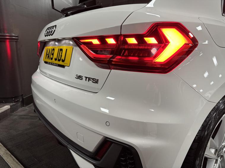 Here at Prestige Autos Surrey, we are excited to offer this stunning 2019 Audi A1 1.5 TFSI 35 S line Sportback. With a sleek white exterior and a hatchback design, this vehicle perfectly combines style and practicality, making it an ideal choice for both urban driving and weekend getaways.