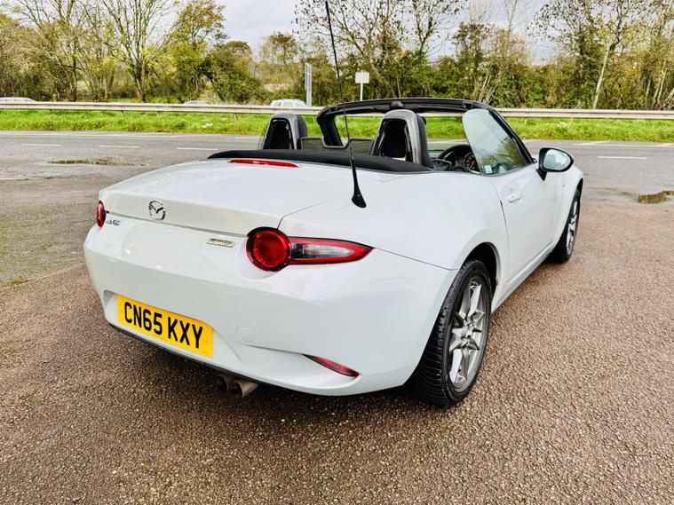 Here at Robert Colthart Car Sales Ltd, we are pleased to offer this stunning 2015 Mazda MX-5 1.5 SKYACTIV-G SE-L Nav Convertible. This remarkable vehicle combines the thrill of open-top driving with the practicality of modern engineering, making it an ideal choice for those who appreciate both style and performance. With a top speed of 127 mph and an impressive acceleration of just 8.3 seconds, this rear-wheel-drive convertible is powered by a 1.5-litre petrol engine that delivers 129 bhp and 111 lbs/ft of torque.