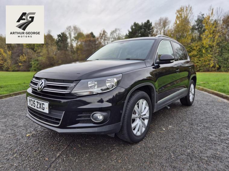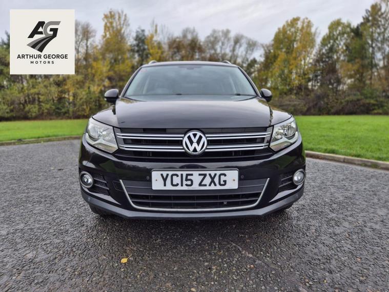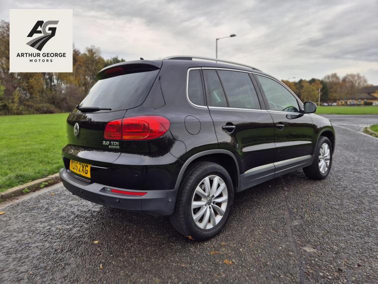 Introducing the 2015 Volkswagen Tiguan 2.0 TDI BlueMotion Tech Match, a robust and stylish SUV that combines practicality with performance. Finished in sleek black, this vehicle is designed to turn heads while offering a comfortable ride for up to five passengers. With a manual transmission and four-wheel drive, it delivers a confident driving experience, whether you're navigating city streets or tackling off-road adventures.