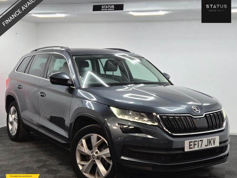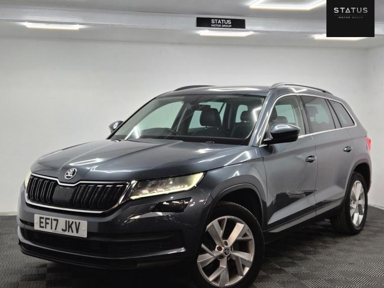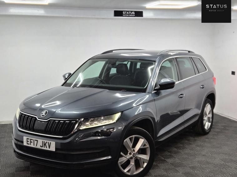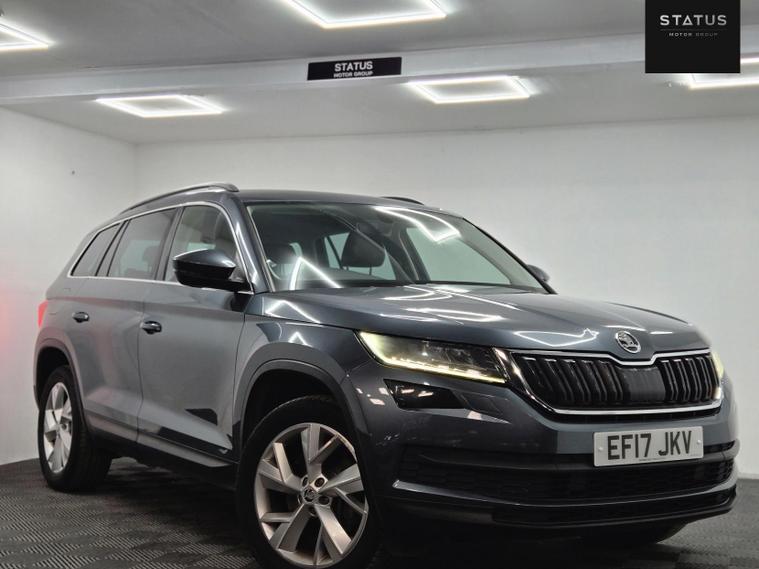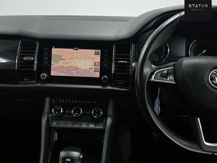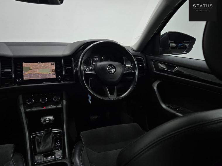 Skoda Kodiaq 2.0 TDI 190 SE L 4x4 5dr DSG [7 Seat], HPI CLEAR, ULEZ Compliant. This vehicle has been well maintained with some service stamps in book. This vehicle is finished in a stunning metallic paintwork with contrasting black part leather interior. This vehicle has just been recently serviced and health checked to ensure every aspect of this car is in working order, passing with no faults. This car has been very well maintained and drives brilliantly. This vehicle also has a very good specification with many optional extras, carplay, adaptive headlights, Bluetooth connectivity, adaptive cruise control, DAB radio, heated seats, daytime running LED lights, electric heated and folding side mirrors, drive mode selector, electric windows all around, navigation system, phone connectivity, and many many more options too long to list! This car is a must see!