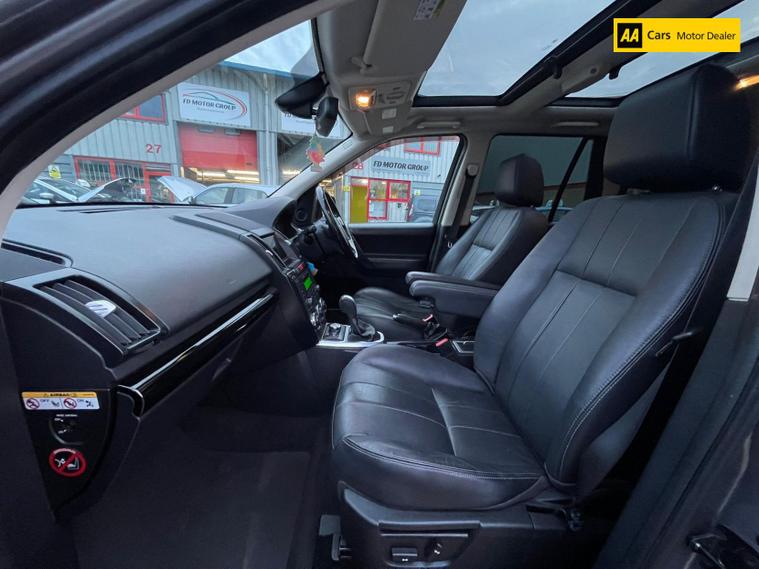 Inside, the Freelander 2 is adorned with grained leather upholstery in a rich ebony finish, providing a luxurious and comfortable environment for all passengers. This high-quality interior not only elevates the overall driving experience but also adds to the vehicle's resale value, making it a wise investment.