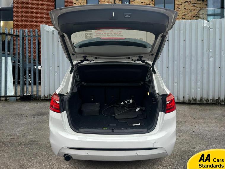 Introducing the BMW 2 Series Active Tourer 1.5 225xe 7.6kWh Sport MPV, a remarkable fusion of performance and practicality. This 2016 model, presented in a striking Alpine White finish, boasts a powerful petrol plug-in hybrid engine that delivers an impressive 221 bhp, allowing for a top speed of 125 mph and an exhilarating acceleration from 0 to 60 mph in just 6.7 seconds. With a fuel consumption of 141.2 mpg, this vehicle is not only efficient but also ULEZ compliant, making it an ideal choice for urban driving. Accommodating up to five passengers with four doors, this MPV is designed for both comfort and versatility, making it perfect for families or those who require additional space.