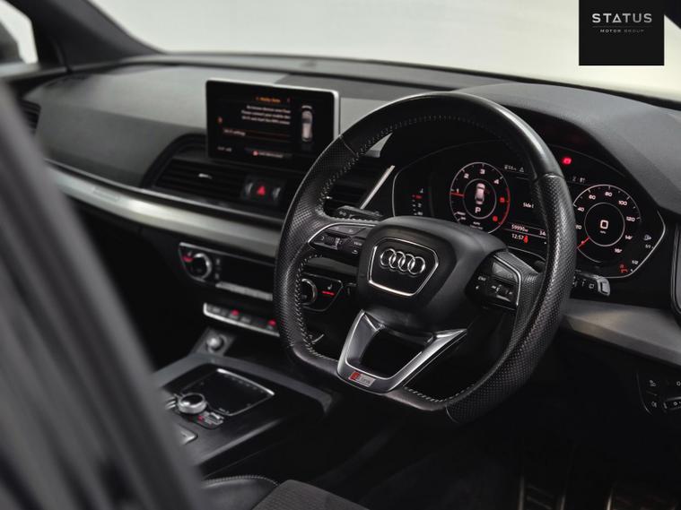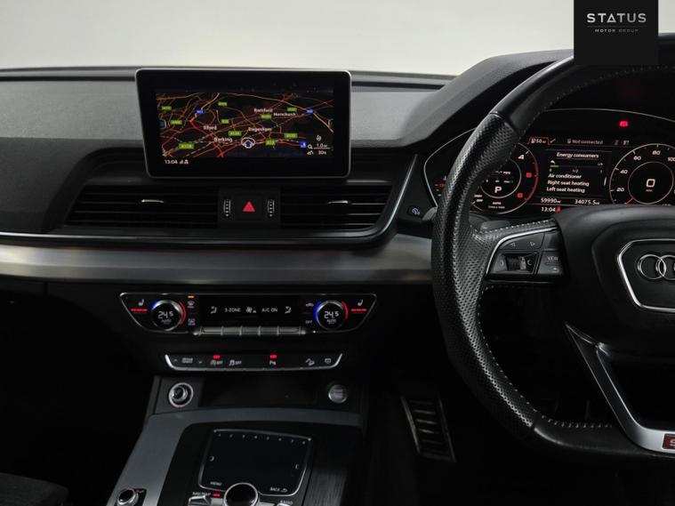 Audi Q5 S Line TDI Quattro S-A, HPI CLEAR, ULEZ Compliant. This vehicle has been well maintained with services. This vehicle is finished in a stunning black metallic paintwork with contrasting black S-Line part leather interior. This vehicle has just been recently serviced and health checked to ensure every aspect of this car is in working order, passing with no faults. This car has been very well maintained and drives brilliantly. This vehicle also has a very good specification with many optional extras, interior lighting, S line flat bottom steering, adaptive headlights, Bluetooth connectivity, adaptive cruise control, DAB radio, heated seats, daytime running LED lights, electric heated and folding side mirrors, drive mode selector, electric windows all around, navigation system, phone connectivity, and many many more options too long to list! This car is a must see!
