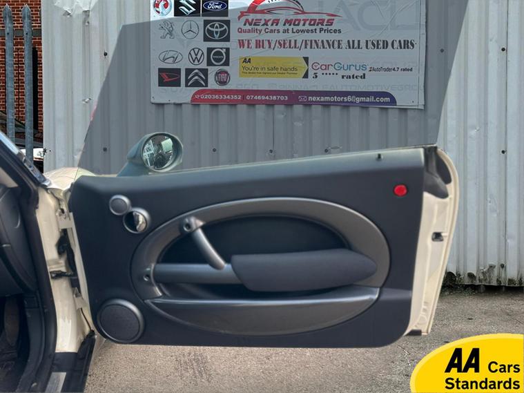 Here at Nexa Motors, we are pleased to offer this delightful 2006 MINI Hatch 1.6 One, a charming hatchback that perfectly combines style, performance, and practicality. With a mileage of just 85, 592 miles, this vehicle is ready to take you on countless adventures, all while turning heads with its stunning Pepper White exterior. With a powerful yet economical 1.6-litre petrol engine, this MINI delivers a spirited driving experience, achieving a top speed of 106 mph and an impressive acceleration time of just 10.9 seconds. Plus, it’s ULEZ compliant, making it a smart choice for urban driving.