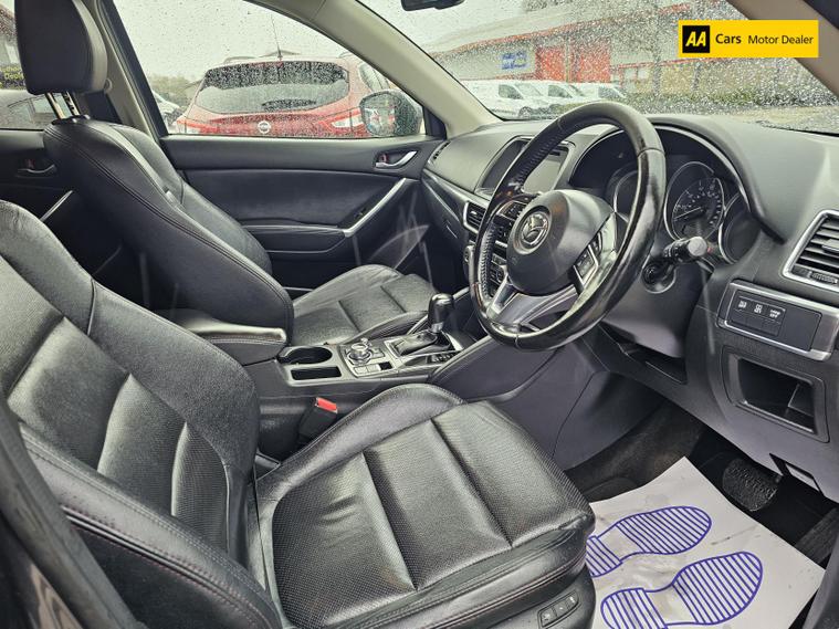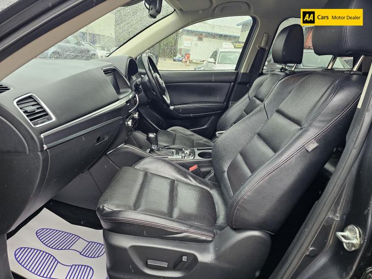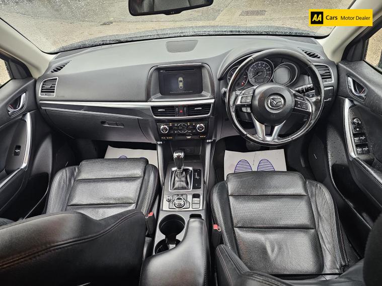 The Mazda CX-5 is designed to accommodate five passengers comfortably, featuring a spacious interior with full leather upholstery that exudes luxury. The sleek grey exterior, complemented by the optional Meteor Grey finish, enhances the vehicle's modern aesthetic, making it a standout choice on the road. With five doors for easy access and a practical SUV body style, this vehicle is perfect for families and individuals alike.