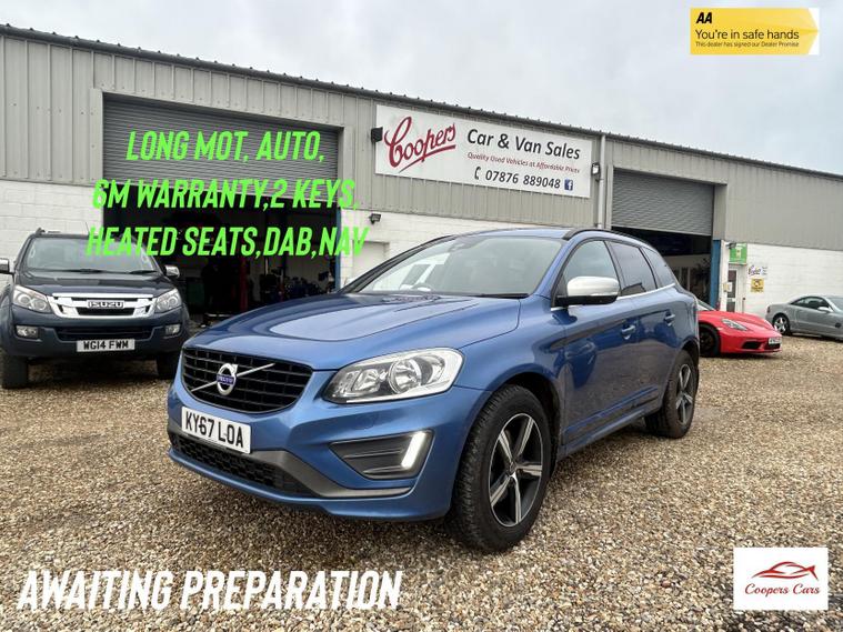 These Volvo XC60's are just lovely. Hugely economical and reliable automatic, euro 6 and this one has been cherished with at least 8 services! It will be leaving us with a long MOT supported by a 6 month warranty and 12 months breakdown cover (warranty can be extended to 48 months at an additional cost) Great specification including auto gearbox, heated half leather, Navigation, ISOFIX, R design alloy wheels, Parking senors, Climate control, Privacy glass, Space saver spare wheel, DAB radio, Air conditioning, Bluetooth connectivity and much more. It also comes with 2 keys.