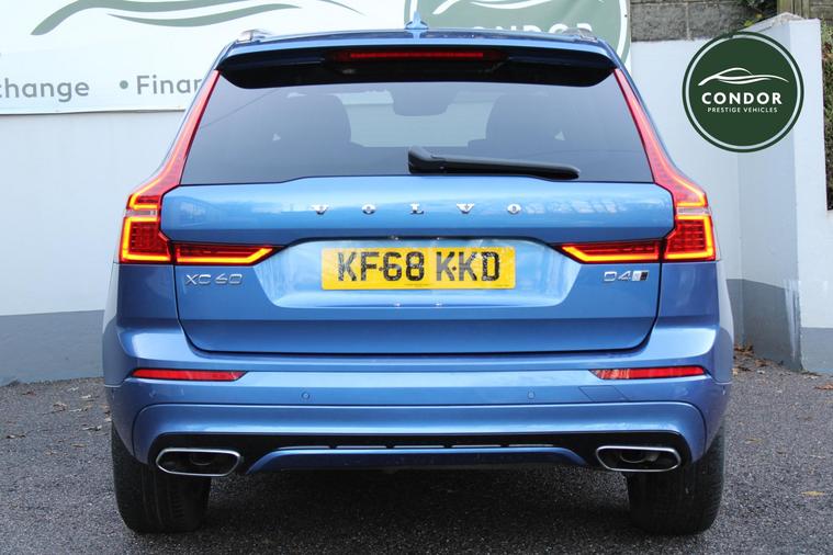We are very proud to offer this stunning 2019 Volvo XC60 2.0 D4 R-Design, a luxurious SUV that combines performance, comfort, and cutting-edge technology. With a striking Bursting Blue exterior and a meticulously crafted interior featuring full leather upholstery, this vehicle is designed to impress. Boasting a powerful 2.0-litre diesel engine that delivers 187 bhp and 295 lbs/ft of torque, the XC60 accelerates from 0 to 60 mph in just 7.9 seconds, making it both responsive and exhilarating to drive. With a top speed of 127 mph and a fuel consumption of 41.5 mpg, this SUV is as efficient as it is powerful, ensuring you enjoy every journey while remaining ULEZ compliant.