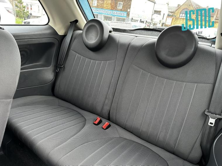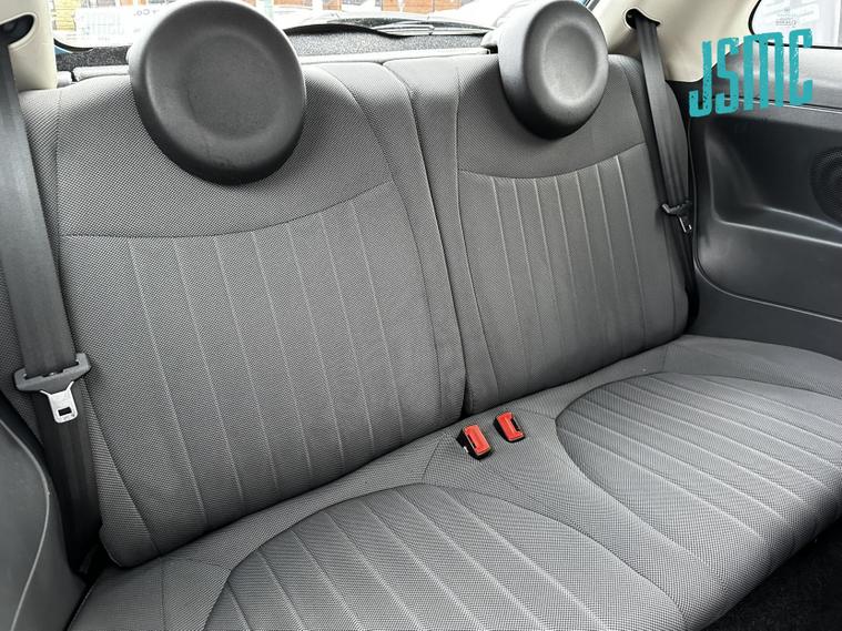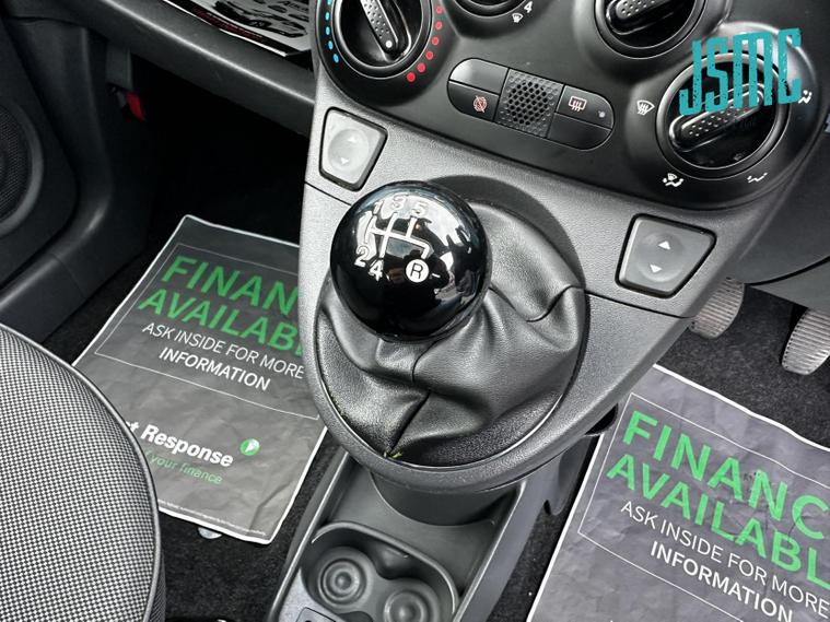 The interior of the Fiat 500 is designed for comfort and style, featuring black and grey cloth upholstery that not only enhances the aesthetic appeal but also provides a comfortable seating experience for up to four passengers. This combination of colours adds a touch of sophistication while ensuring that the interior remains practical and easy to maintain.