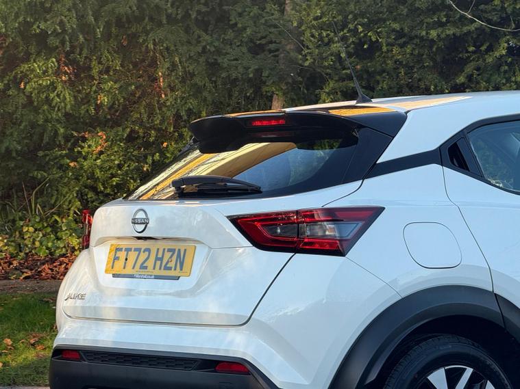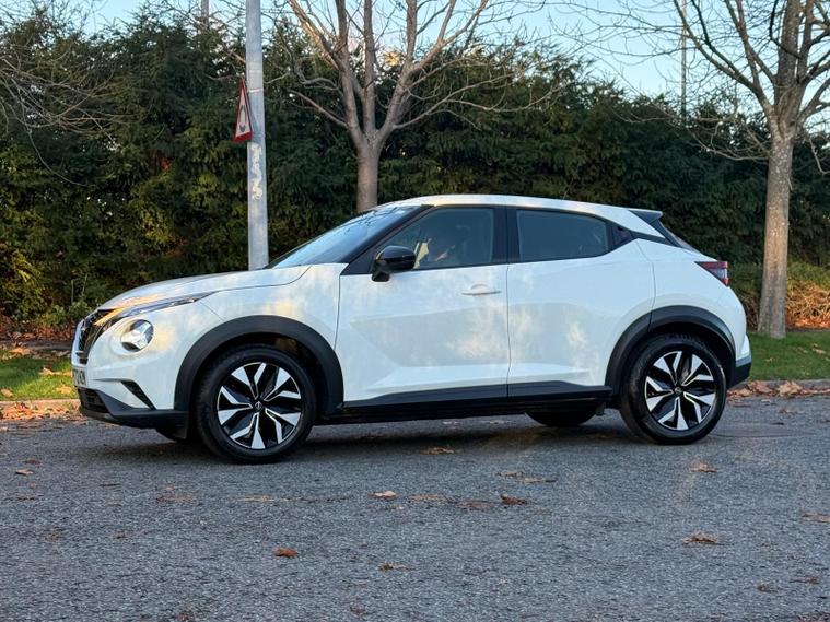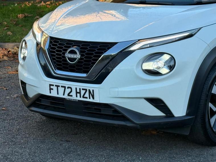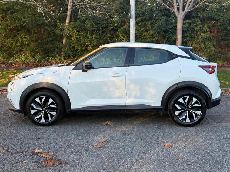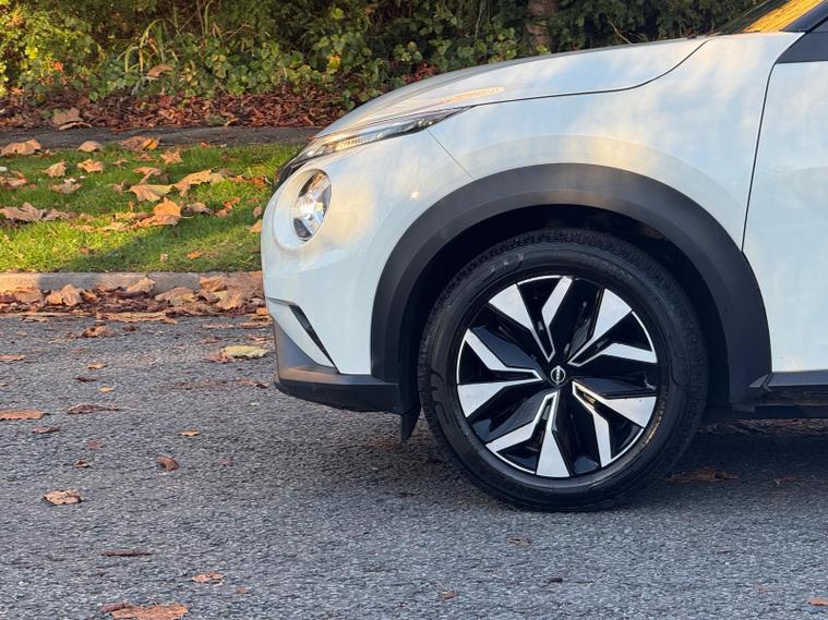 We are very proud to offer this stunning 2023 Nissan Juke 1.0 DIG-T Acenta, a perfect blend of style, performance, and practicality. This eye-catching white SUV is designed to turn heads while providing a comfortable ride for up to five passengers. With its sleek lines and modern aesthetics, the Juke stands out in any setting.