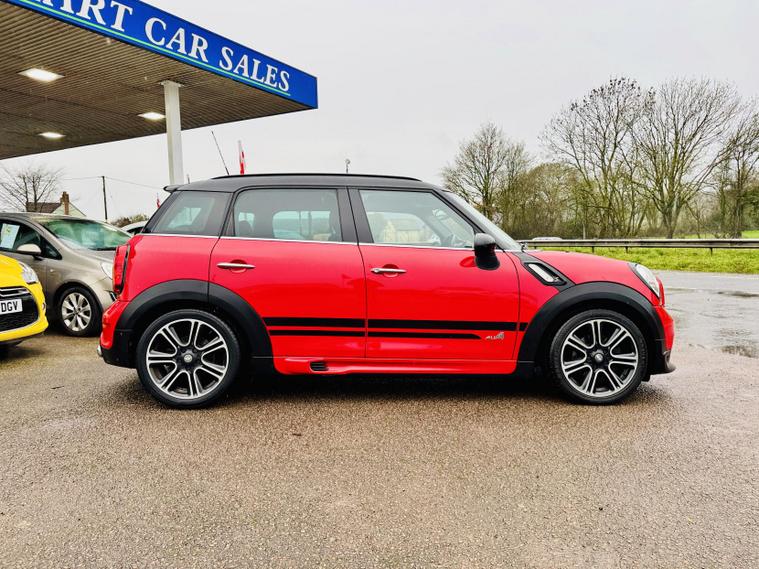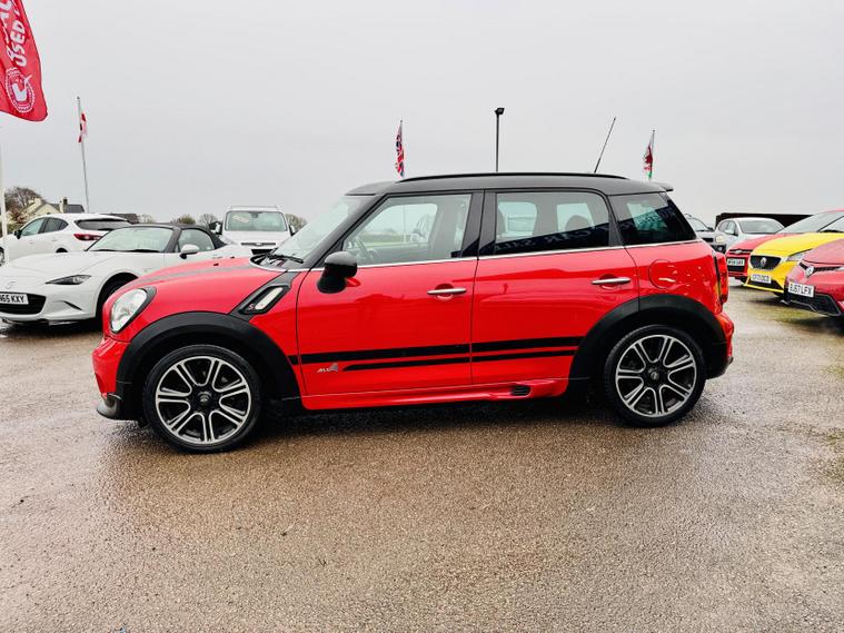 Introducing the MINI Countryman 2.0 Cooper SD SUV, a stunning blend of style, performance, and practicality. Finished in a striking Chili Red, this 2014 model boasts a robust 2.0-litre diesel engine that delivers an impressive 141 bhp and 225 lbs/ft of torque, allowing for a spirited acceleration of just 9.4 seconds to 60 mph. With a mileage of 65, 000 miles, this five-door SUV comfortably seats five passengers, making it the perfect companion for both city driving and weekend adventures. The four-wheel-drive system ensures you can tackle any terrain with confidence, while the manual transmission adds an engaging driving experience.