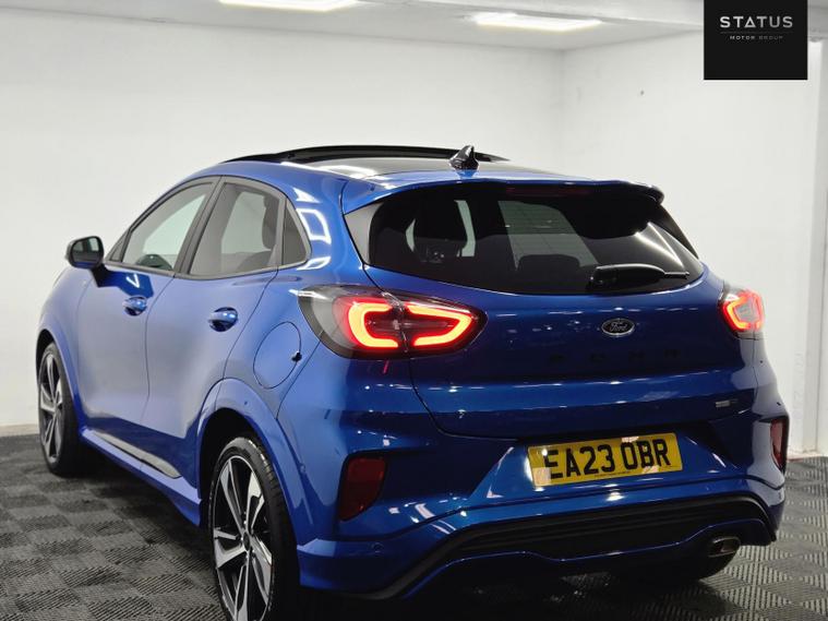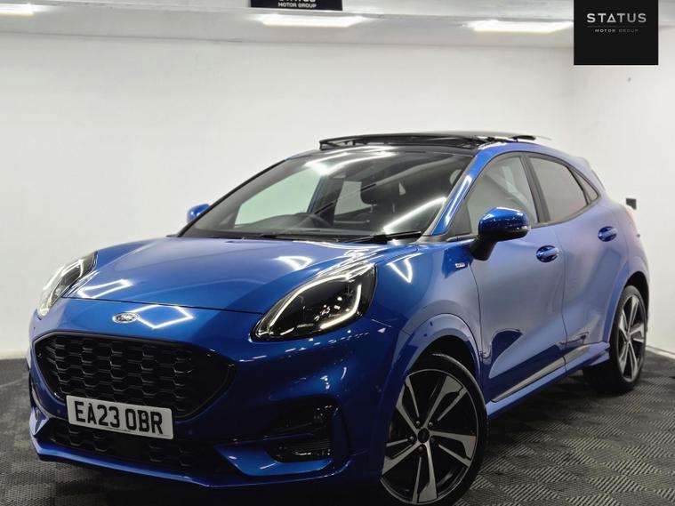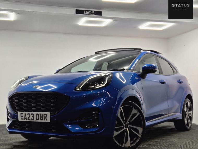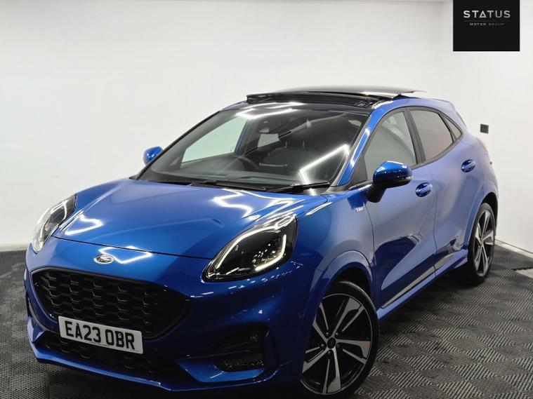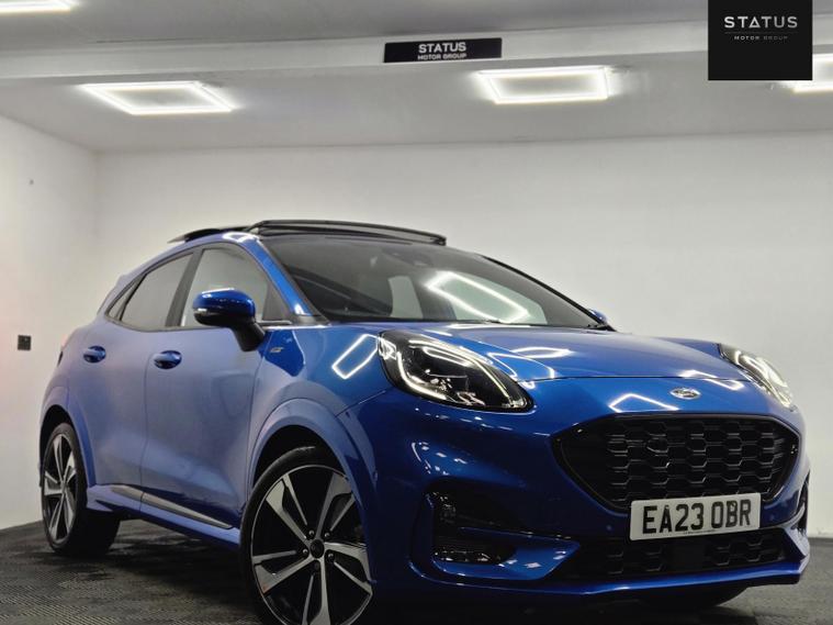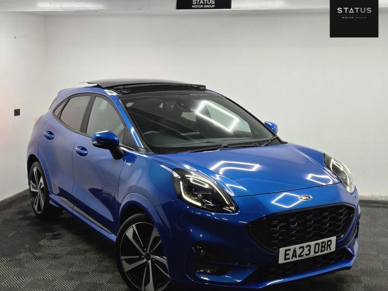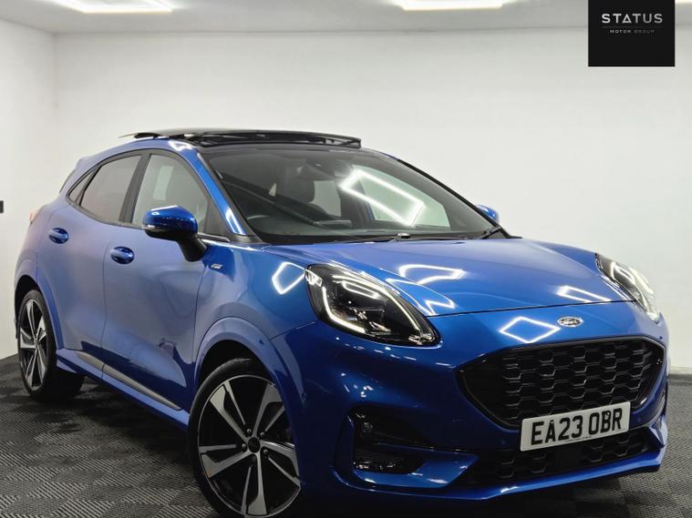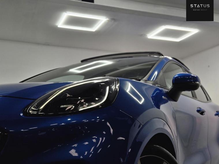 Ford Puma ST-LINE X MHEV Auto, HPI CLEAR, ULEZ Compliant. This vehicle has been well maintained with services. This vehicle is finished in a stunning blue metallic paintwork with contrasting black part leather interior. This vehicle has just been recently serviced and health checked to ensure every aspect of this car is in working order, passing with no faults. This car has been very well maintained and drives brilliantly. This vehicle also has a very good specification with many optional extras, panoramic sunroof, camera, adaptive headlights, Bluetooth connectivity, adaptive cruise control, DAB radio, heated seats, daytime running LED lights, electric heated and folding side mirrors, drive mode selector, electric windows all around, navigation system, phone connectivity, and many many more options too long to list! This car is a must see!
