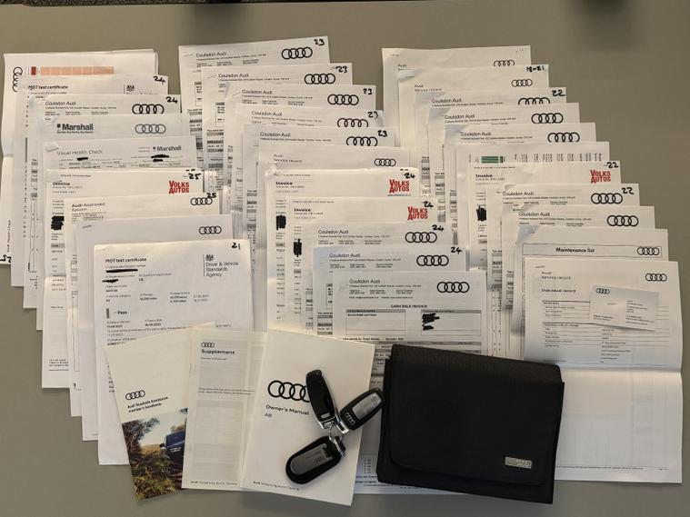 The service history is exceptionally thorough, correctly sequenced and free from duplication. The car has been maintained well inside Audi’s LongLife servicing regime, averaging 8, 900 miles per service interval. Servicing includes Audi main dealer brake fluid servicing at 11, 797 miles, LongLife servicing at 25, 758 miles, an interim oil service at 39, 027 miles, and further Audi servicing at 54, 580 miles. Independent specialist servicing followed with an inspection and brake fluid service at 44, 701 miles, a minor service at 70, 489 miles, a major service including fuel filter and brake fluid at 92, 308 miles, and most recently a minor service with air filter replacement in Sep 2025 at 107, 103 miles. All invoices and digital records are present and consistent.