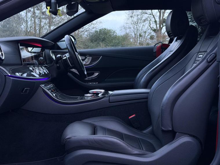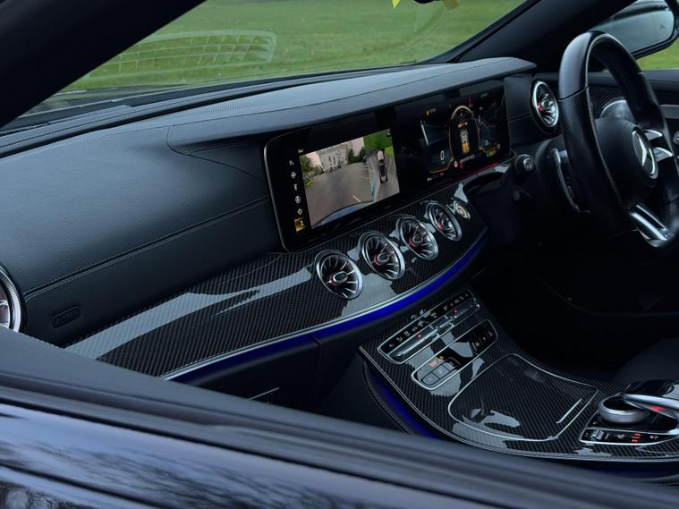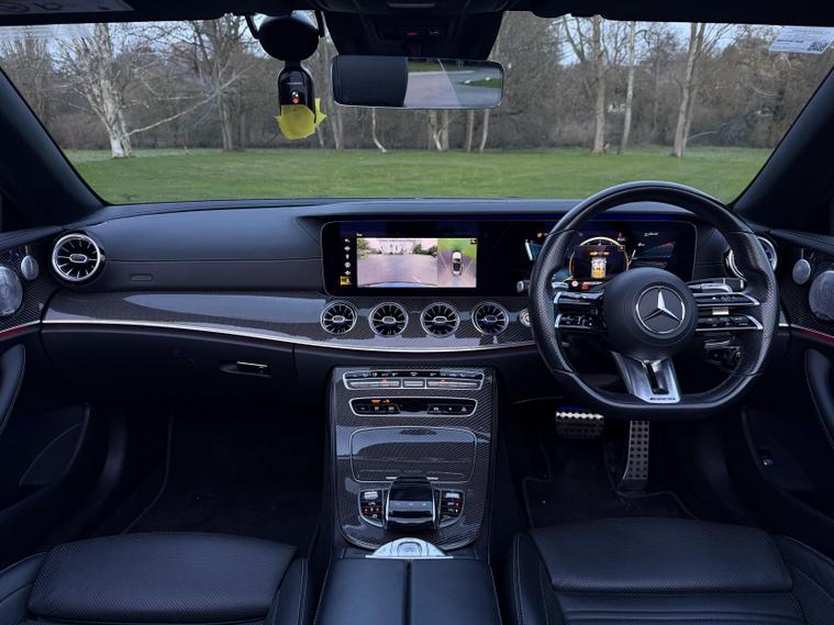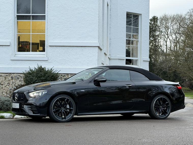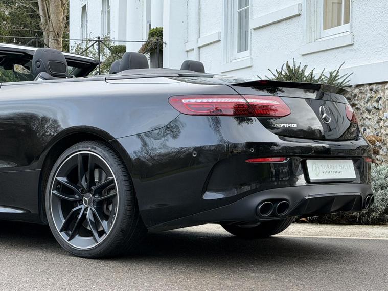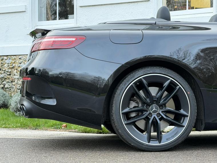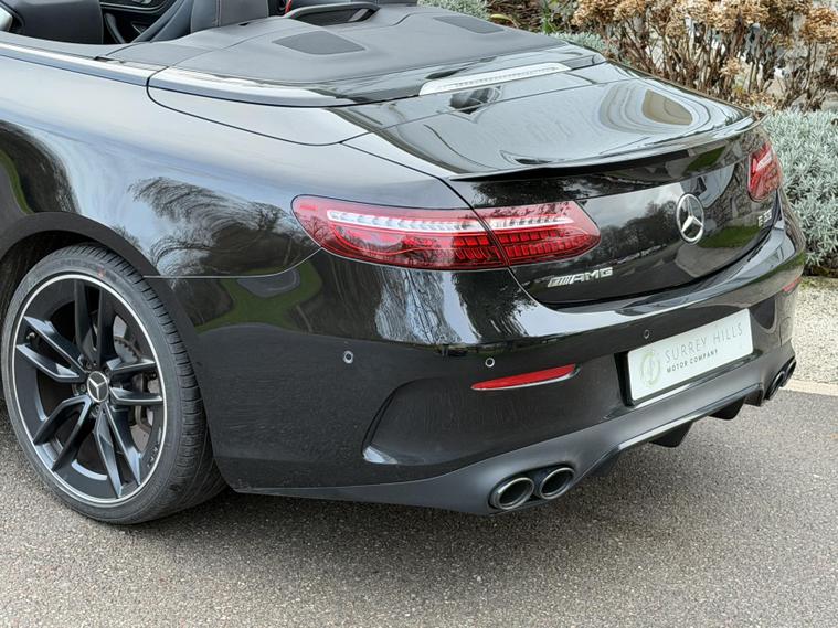 Mercedes-Benz E53 AMG Night Edition Premium Plus Cabriolet finished in Obsidian Black with AMG Nappa leather in black with grey topstitching. Acquired directly from the previous owner, a local Surrey resident who has moved into a larger vehicle. Fully HPI clear and supplied with two keys, original owners pack, Mercedes-Benz digital service history, and the official factory specification sheet from Mercedes-Benz.