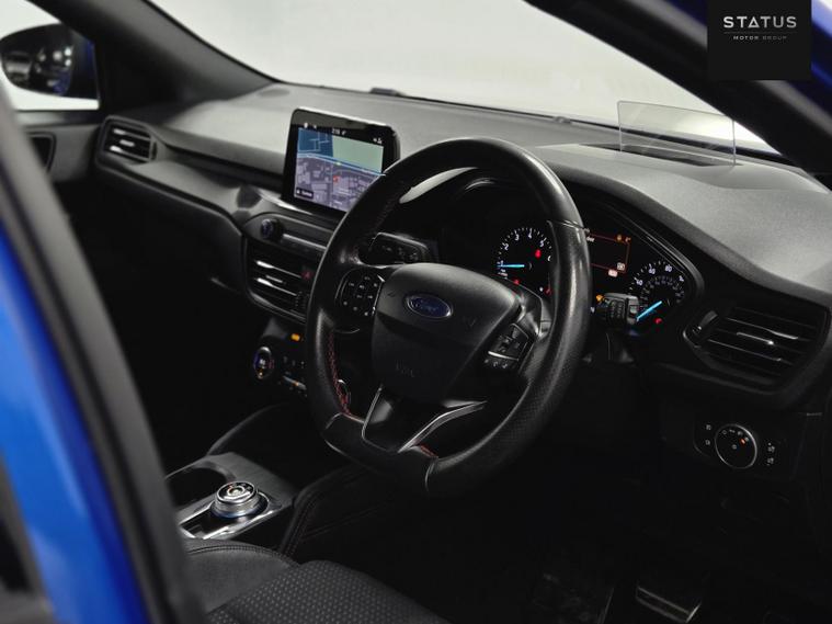 Ford Focus ST-LINE X Auto, HPI CLEAR, ULEZ Compliant. This vehicle has been well maintained with service stamps in book. This vehicle is finished in a stunning blue metallic paintwork with contrasting black part leather ST-Line interior. This vehicle has just been recently serviced and health checked to ensure every aspect of this car is in working order, passing with no faults. This car has been very well maintained and drives brilliantly. This vehicle also has a very good specification with many optional extras, heads up display, wireless charging, carplay, blind spot assist, adaptive headlights, Bluetooth connectivity, cruise control, DAB radio, heated seats, daytime running LED lights, electric heated and folding side mirrors, drive mode selector, electric windows all around, navigation system, phone connectivity, and many many more options too long to list! This car is a must see!