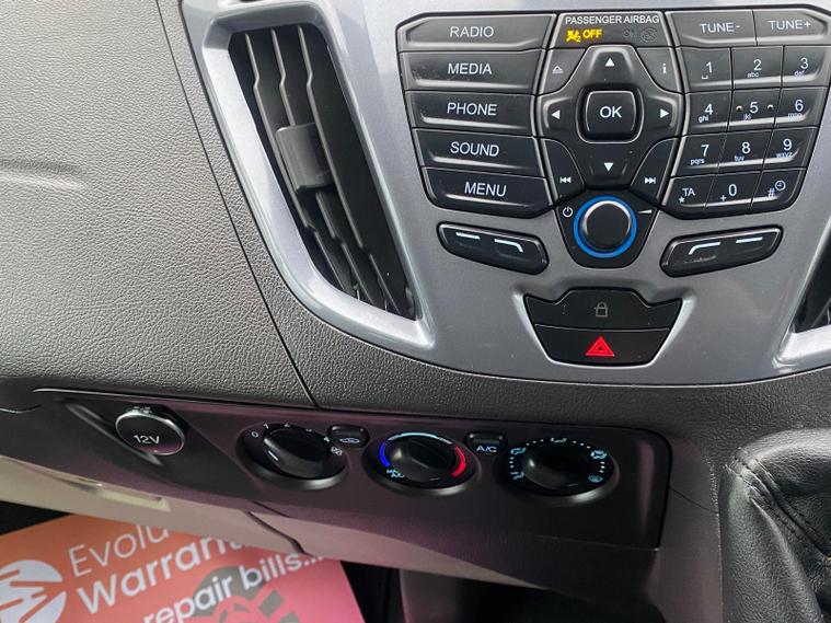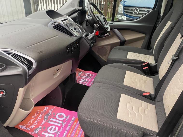 Air conditioning, heated front seats, heated front screen, electric windows, electrically adjustable and folding door mirrors, Ford Audio system with DAB, USB and Bluetooth, cruise control, auto lights, front and rear parking sensors, side steps, alloy wheels, and two side sliding doors with tinted windows. Finished in a comfortable and versatile 9-seat configuration.