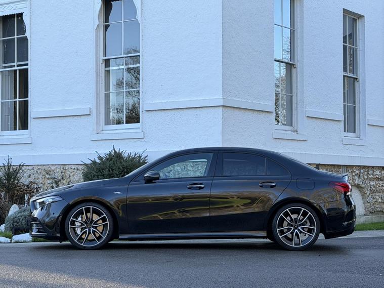 This Mercedes-Benz A35 AMG Premium Saloon is a well-documented, carefully maintained example with clear provenance and a desirable factory specification. It is HPI clear, supplied with two keys, the original handbook pack and a complete Mercedes-Benz service record. The car was first registered and supplied new by Mercedes-Benz of West London in July 2021. It was then retailed again through the Mercedes Approved Used network in August 2022 before being sold by Mercedes-Benz Guildford in December 2024 to its most recent owners, a local Surrey couple who have since relocated to Portugal, prompting the sale.