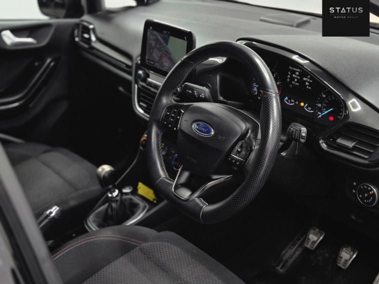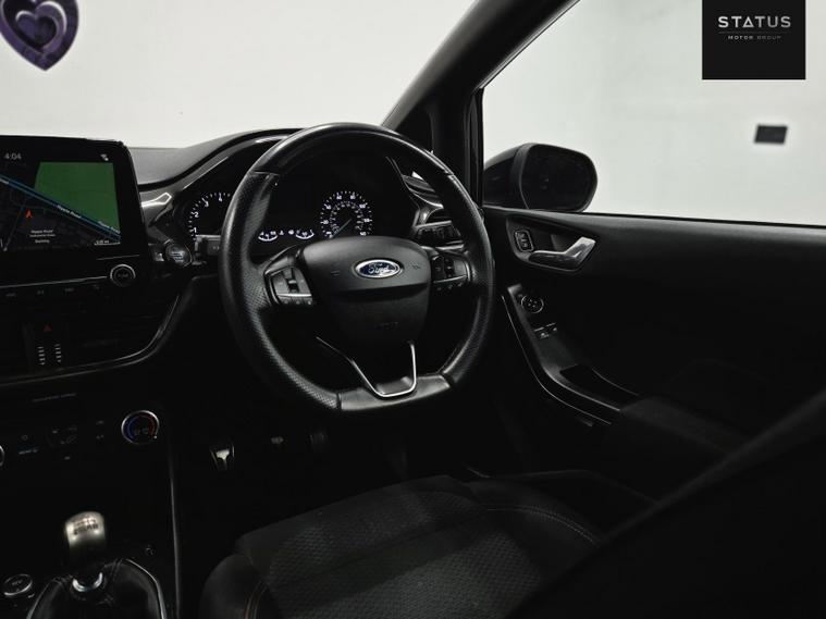 Ford Fiesta ST-LINE Turbo, HPI CLEAR, ULEZ Compliant. This vehicle has been well maintained. This vehicle is finished in a stunning black metallic paintwork with contrasting black interior. This vehicle has just been recently serviced and health checked to ensure every aspect of this car is in working order, passing with no faults. This car has been very well maintained and drives brilliantly. This vehicle also has a very good specification with many optional extras, adaptive headlights, carplay, Bluetooth connectivity, cruise control, DAB radio, daytime running LED lights, electric heated side mirrors, drive mode selector, electric windows all around, navigation system, phone connectivity, and many many more options too long to list! This car is a must see!