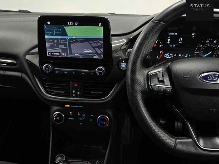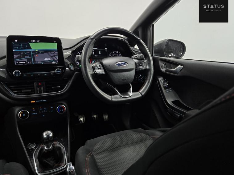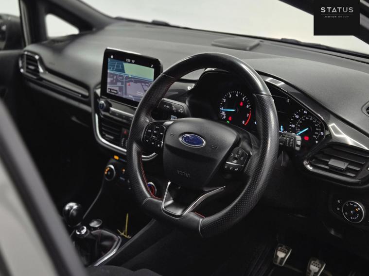 Ford Fiesta ST-LINE Turbo, HPI CLEAR, ULEZ Compliant. This vehicle has been well maintained with service stamps in book. This vehicle is finished in a stunning grey metallic paintwork with contrasting black interior. This vehicle has just been recently serviced and health checked to ensure every aspect of this car is in working order, passing with no faults. This car has been very well maintained and drives brilliantly. This vehicle also has a very good specification with many optional extras, adaptive headlights, carplay, Bluetooth connectivity, cruise control, DAB radio, daytime running LED lights, electric heated side mirrors, drive mode selector, electric windows all around, navigation system, phone connectivity, and many many more options too long to list! This car is a must see!