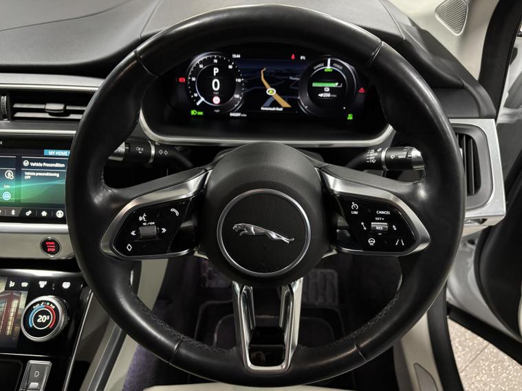 Here for sale at Prestige Autos Surrey, we have this lovely 2019 Jaguar I-PACE 400 90kWh HSE SUV, finished in Fuji White. With an impressive 395 bhp and a remarkable torque of 257 lbs/ft, this electric powerhouse accelerates from 0 to 60 mph in just 4.5 seconds, delivering an adrenaline rush that rivals any sports car.