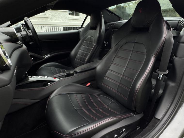 Finished in sophisticated Grigio Silverstone with Charcoal leather, this example stands out with £37, 296 in factory-fitted options that truly elevate it beyond standard specification. The Carbon Fibre Driver Zone with LED steering wheel, carbon dashboard inserts and aluminium footrest complement the car’s sporting character, while the Magneride Dual Mode Suspension enhances comfort and precision handling. Diamond-cut forged 20-inch alloys sit beautifully against Rosso Corsa brake calipers and Scuderia Ferrari shields, while chromed front grille detailing and anti-stone-chip film protect the pristine finish.
