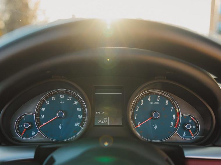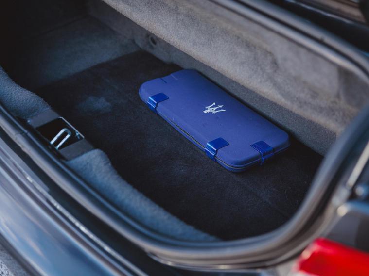 The interior is trimmed in Poltrona Frau Bordeaux leather, extending across the seats, dashboard, door cards and centre console. Seat bolsters remain firm with minimal wear, the rear seats present particularly well, and the cabin retains crisp switchgear markings. The Maserati analogue clock, Bose audio system and trident detailing are all present, creating a characterful and distinctive cabin. The boot is clean and correctly trimmed, complete with toolkit. Noted imperfections are limited to a parking sensor warning light, non-functioning driver’s seat adjustment and some light sticky-button wear to the steering wheel and adjacent switch panel.