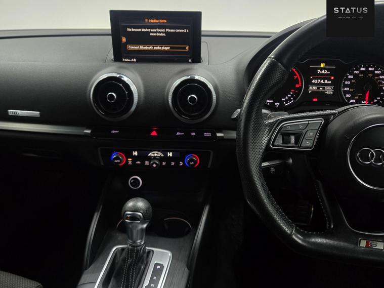 Audi A3 S-Line TDI S-A, HPI CLEAR, ULEZ Compliant. This vehicle has been well maintained with services. This vehicle is finished in a stunning Mytos Black metallic paintwork with contrasting black part leather interior. This vehicle has just been recently serviced and health checked to ensure every aspect of this car is in working order, passing with no faults. This car has been very well maintained and drives brilliantly. This vehicle also has a very good specification with many optional extras, adaptive headlights, Bluetooth connectivity, adaptive cruise control, DAB radio, daytime running LED lights, electric heated and folding side mirrors, drive mode selector, electric windows all around, navigation system, phone connectivity, and many many more options too long to list! This car is a must see!
