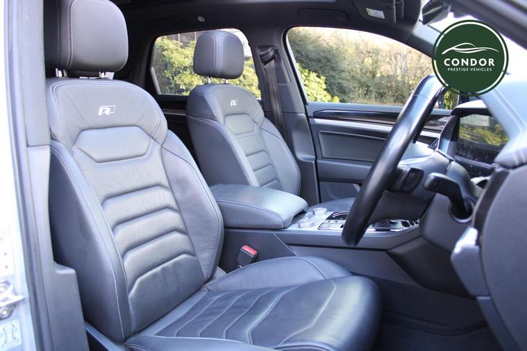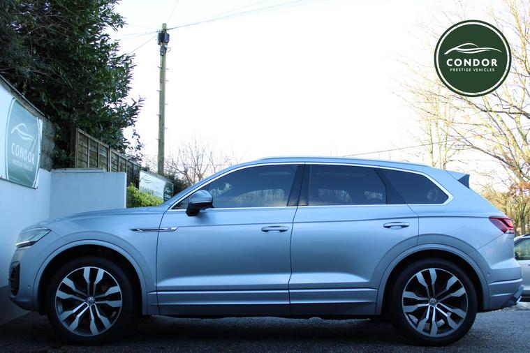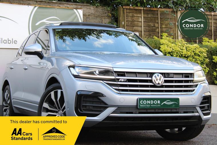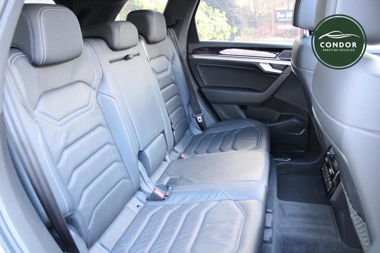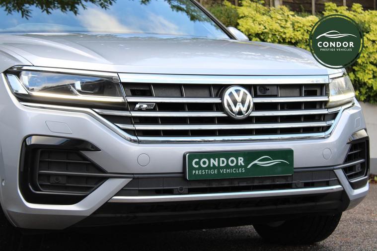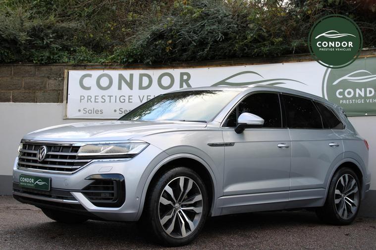 Here at Condor Vehicle Sales Ltd, we are proud to offer this stunning 2019 Volkswagen Touareg 3.0 TDI V6 R-Line Tech, a remarkable SUV that combines luxury, performance, and cutting-edge technology. With a powerful 3.0-litre diesel engine delivering an impressive 282 bhp and 443 lbs/ft of torque, this vehicle accelerates from 0 to 60 mph in just 6.3 seconds, making it a thrilling drive. The automatic transmission and four-wheel-drive system ensure a smooth and responsive experience, whether you're navigating city streets or tackling off-road adventures. Finished in a sleek silver exterior and featuring full leather upholstery, this Touareg exudes sophistication and comfort for all five passengers.