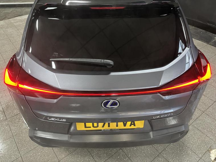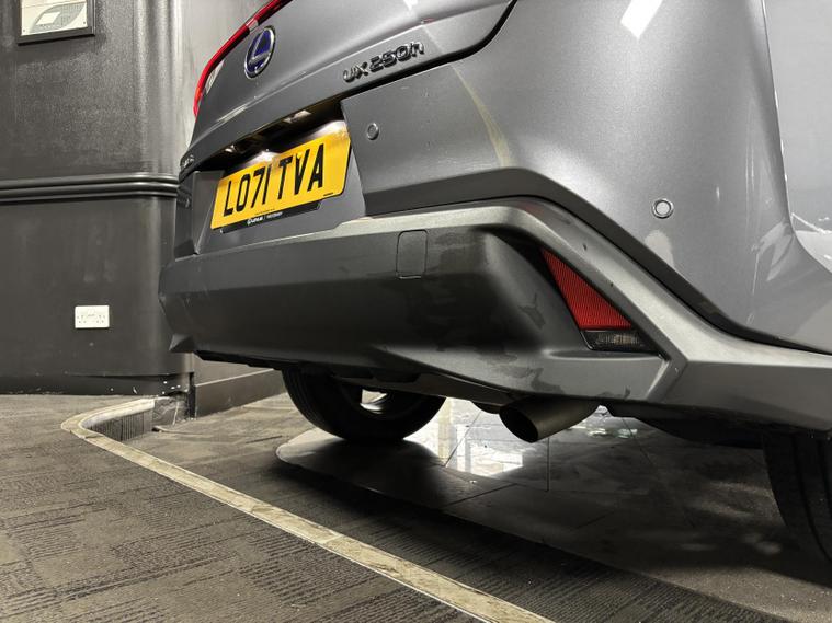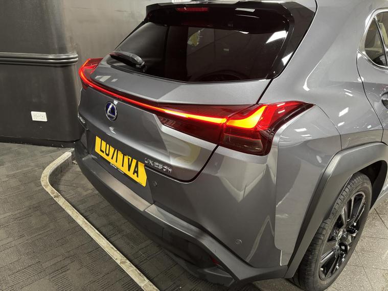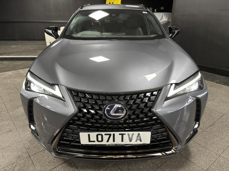 This Lexus UX is equipped with the optional Lexus Navigation system, offering real-time traffic updates, intuitive route guidance, and seamless smartphone integration for apps and music, making every journey simple and stress-free. It also features striking 18-inch dark-finish alloy wheels, enhancing both the sporty appearance and on-road stability.