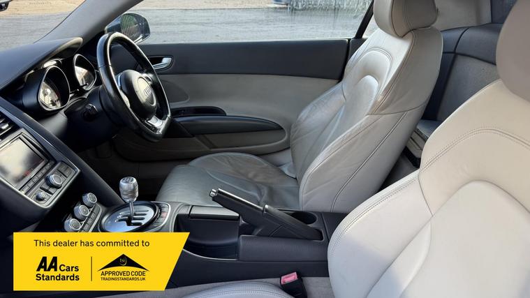 Introducing the exhilarating Audi R8 4.2 FSI V8 Coupe, a masterpiece of engineering and design that perfectly marries performance with luxury. This stunning black coupe, with its sleek lines and aggressive stance, is not just a car; it’s an experience waiting to be had. With a powerful 4.2-litre V8 engine producing an impressive 414 bhp, this beauty can rocket from 0 to 60 mph in just 4.6 seconds, reaching a top speed of 187 mph. The manual transmission and quattro four-wheel drive system ensure that every drive is a thrilling adventure, whether you're navigating winding roads or cruising on the motorway.
