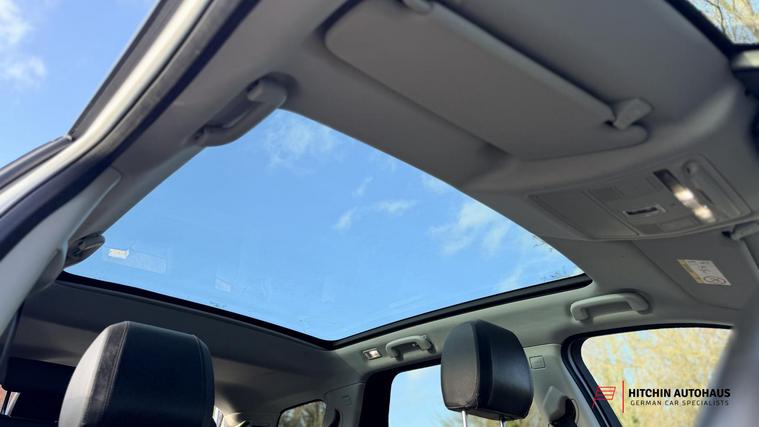 The car is very well equipped, offering sought-after features such as 7-seat practicality, a panoramic glass roof, Bi-Xenon headlights with LED signature and power wash, front and rear parking sensors with reverse camera, heated front seats with power adjustment and lumbar support, keyless entry and push-button start, a powered tailgate, navigation system with European maps, Bluetooth connectivity with audio streaming, DAB digital radio, and ambient interior lighting. The interior is finished in Ebony Taurus perforated leather with silver aluminium trim, giving a premium feel throughout.