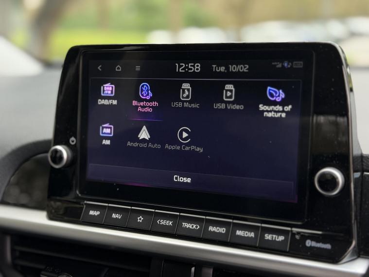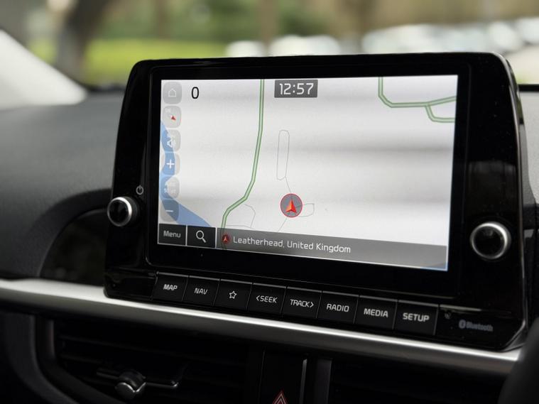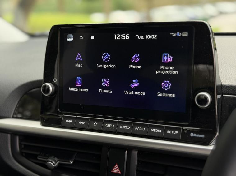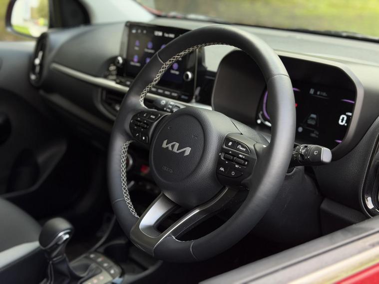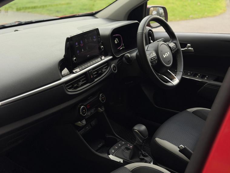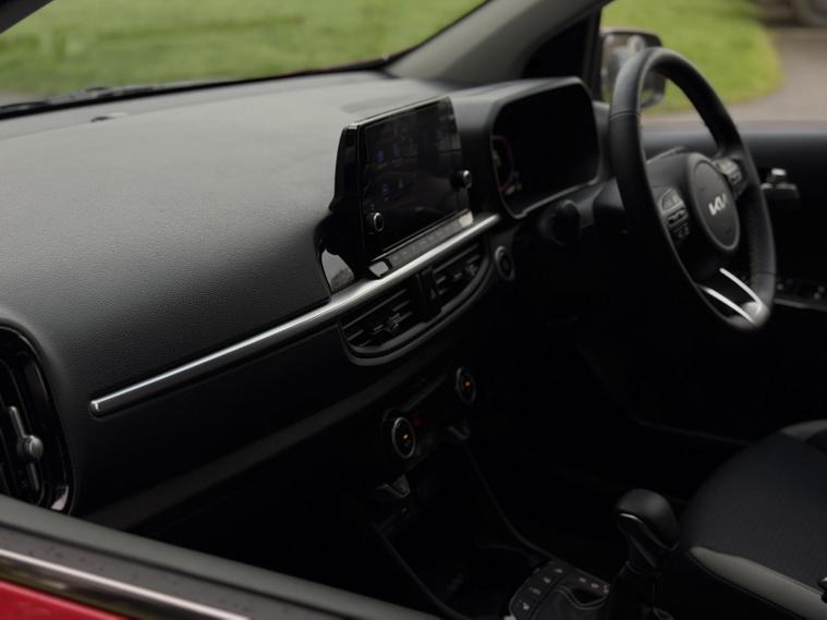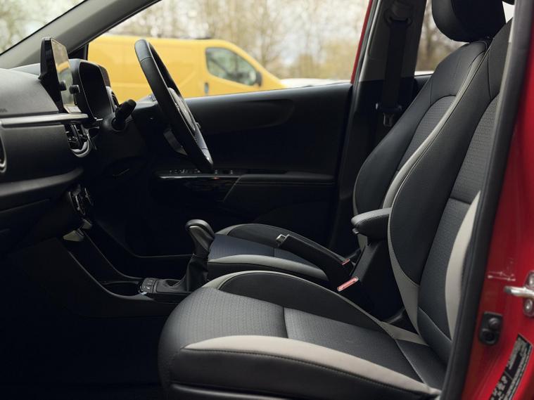 This is the top-spec Picanto 3 model, offering a notably high level of equipment for the class. Specification includes an 8-inch touchscreen navigation system with Apple CarPlay and Android Auto, Bluetooth connectivity, wireless phone charging, multiple USB and USB-C charging ports for front and rear passengers, cruise control with speed limiter, lane follow assist and lane keep assist, intelligent speed limit assist, forward collision avoidance with pedestrian and cyclist detection, rear parking sensors and a reversing camera.
